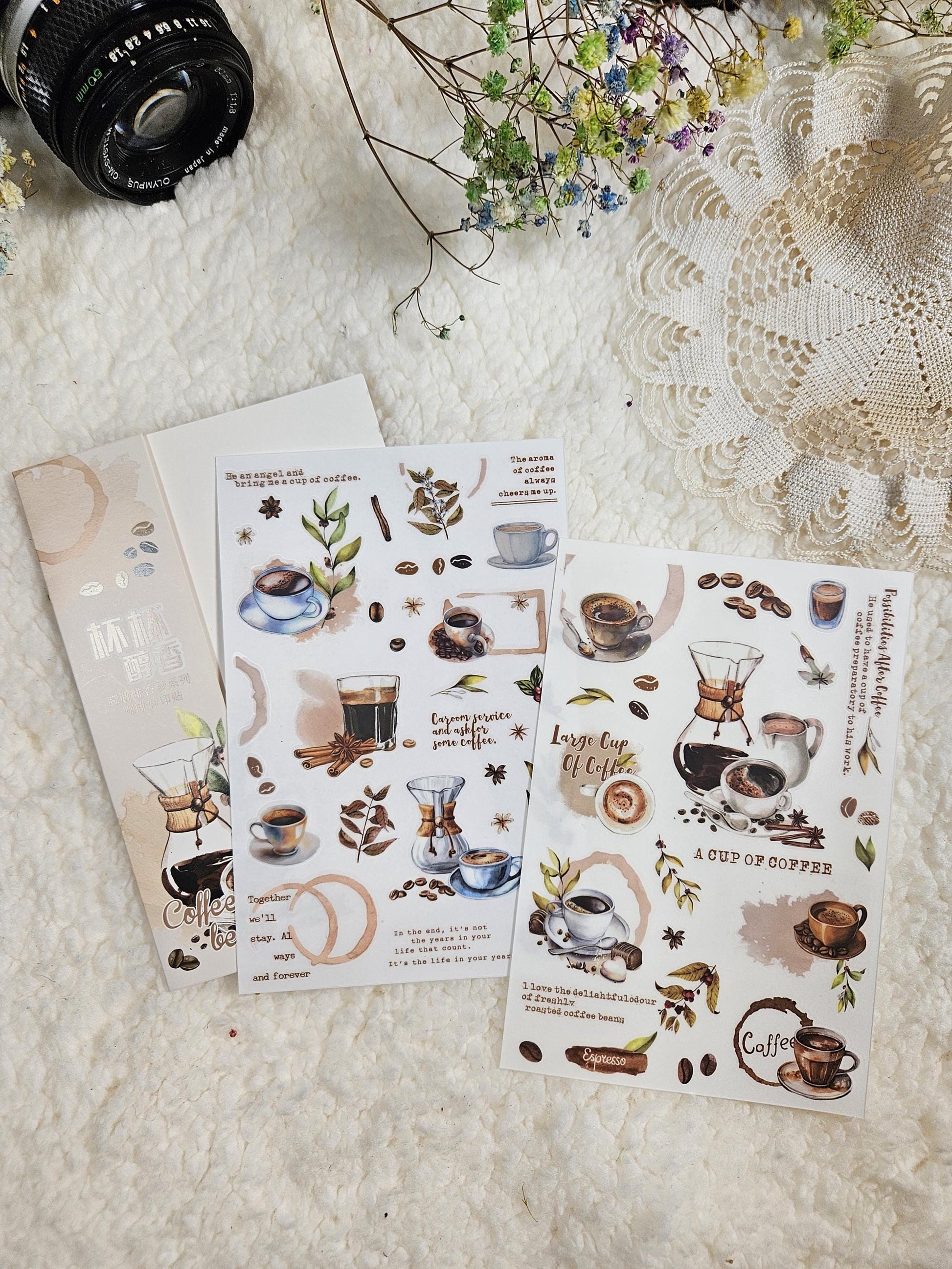 2 sheets, Transfer Stickers, Rub-on Stickers, Coffee Theme: Coffee Beans