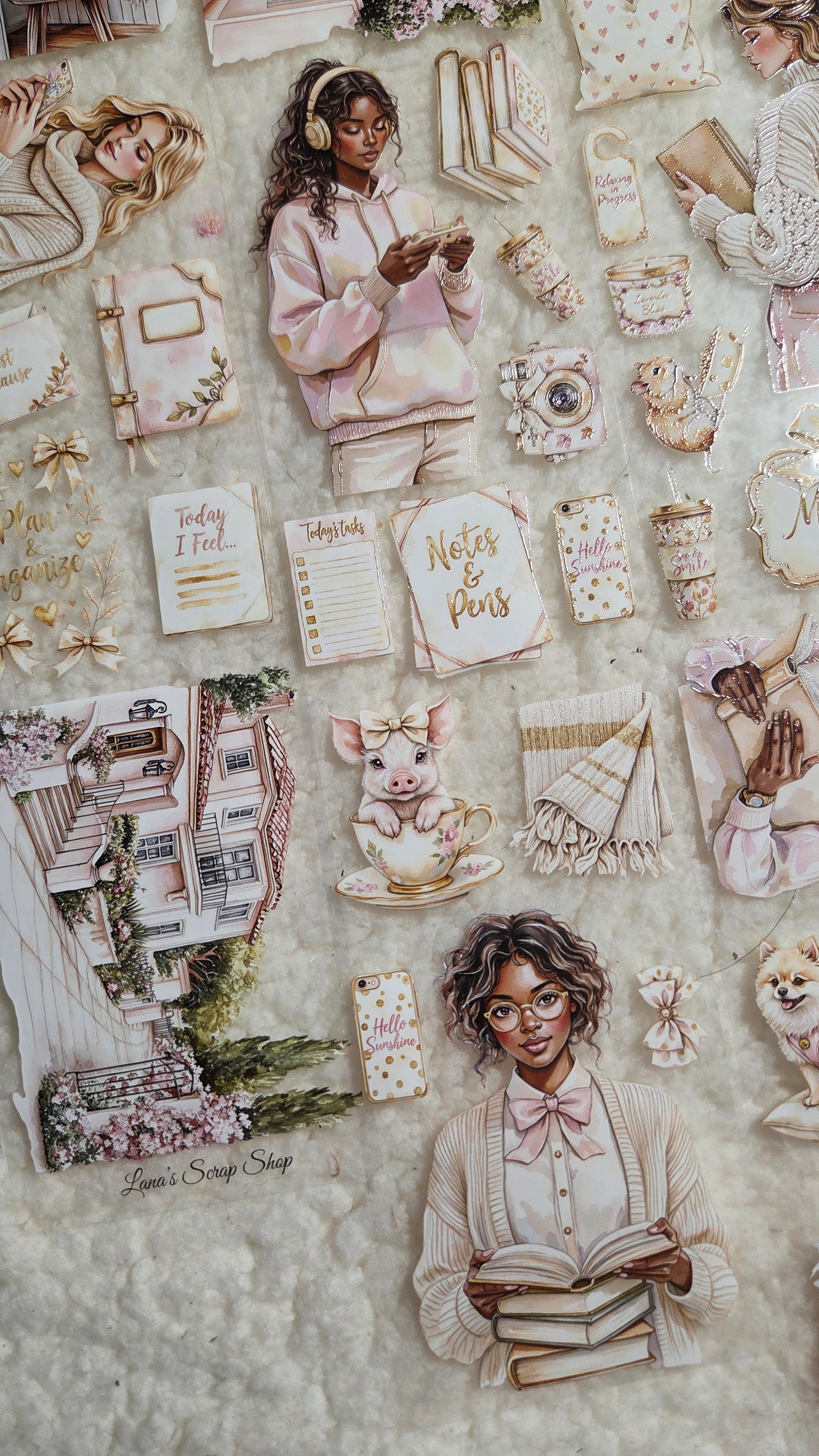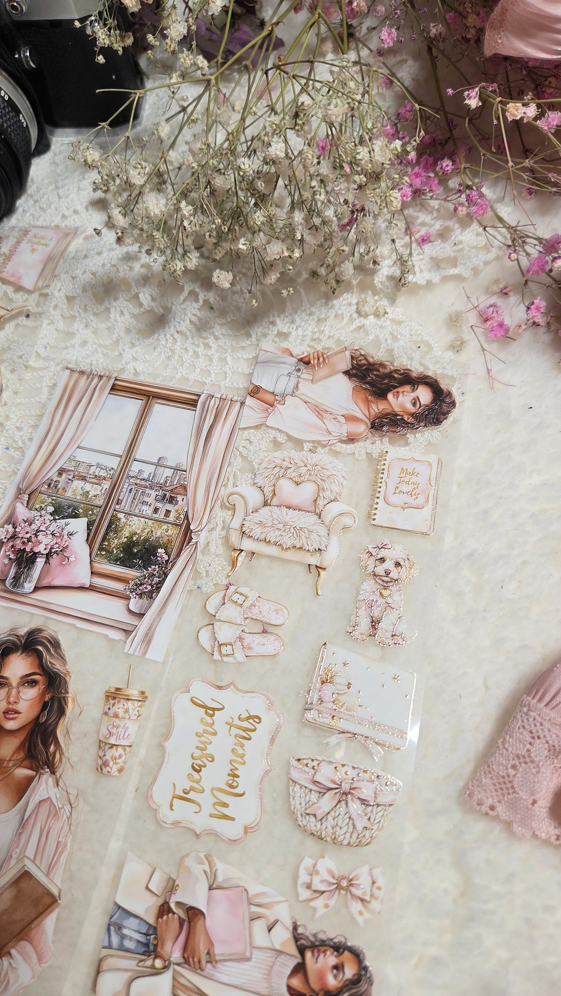 My decorated PET tapes are perfect for journaling but can be used in scrapbooking and other creative projects with extra glue support (glue tape for example). Made from high-quality clear or matte PET material, these tapes feature stunning illustrations created using AI technology (aven bought clipart), with crystal ink designs that add elegance and sparkle to any page. These tapes are a versatile tool to elevate your DIY crafts with ease and style.