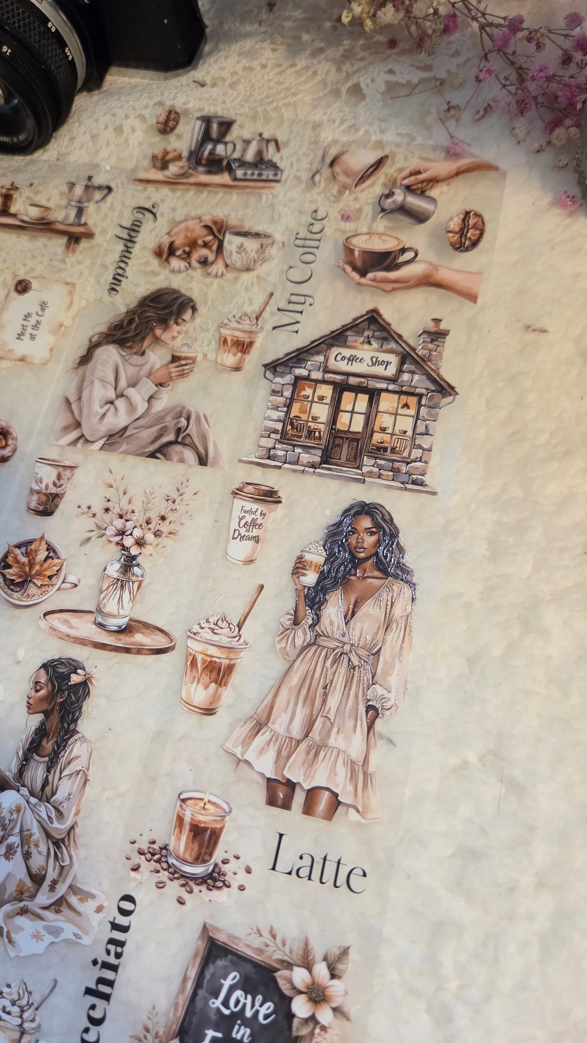 My decorated PET tapes are perfect for journaling but can be used in scrapbooking and other creative projects with extra glue support (glue tape for example). Made from high-quality clear or matte PET material, these tapes feature stunning illustrations created using AI technology (aven bought clipart), with crystal ink designs that add elegance and sparkle to any page. These tapes are a versatile tool to elevate your DIY crafts with ease and style.