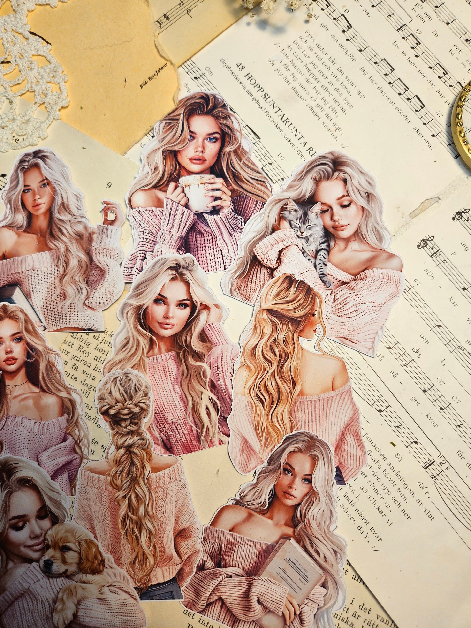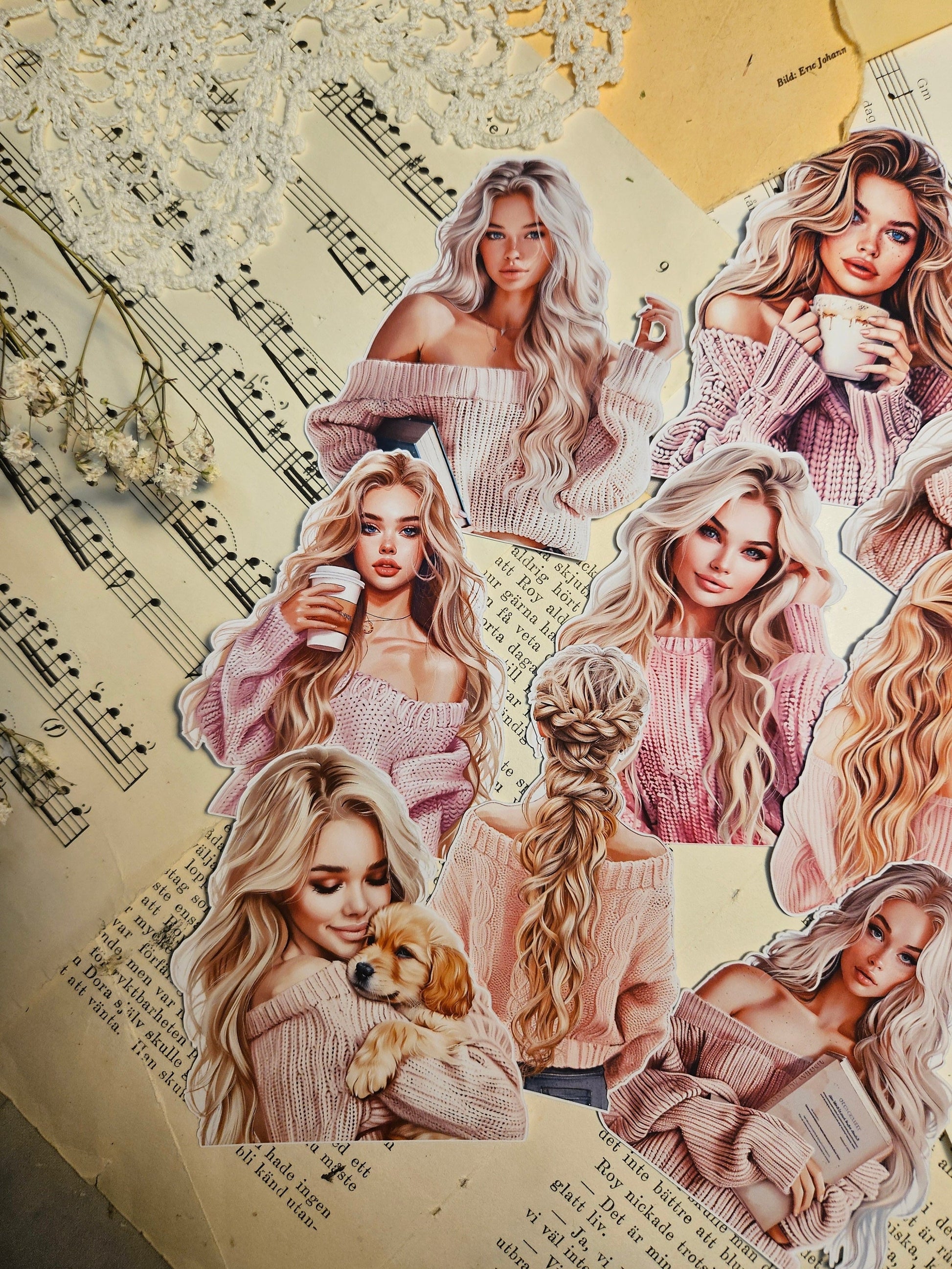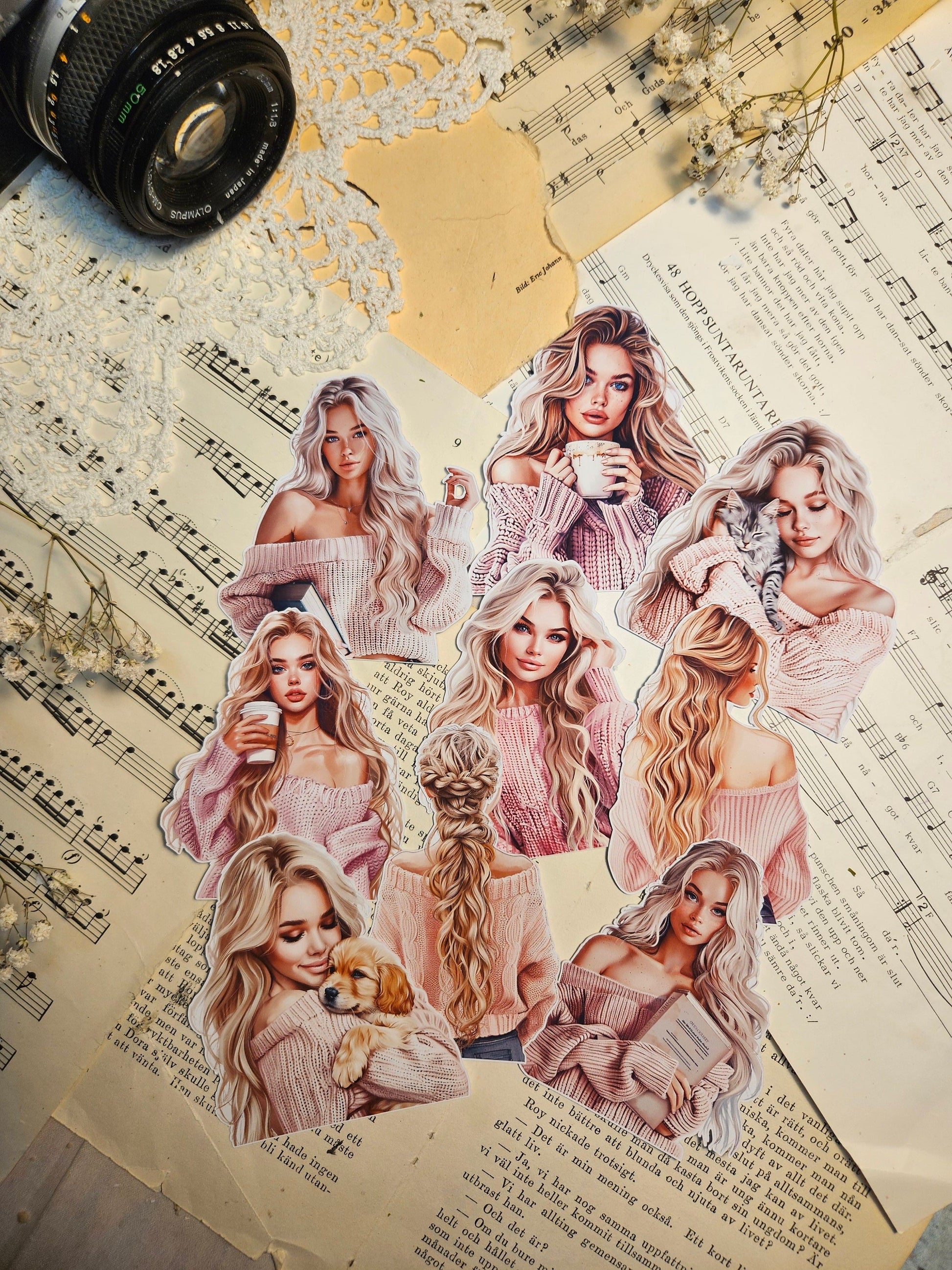 Cozy Pink Blondies Set of 9 Stickers | • Scrapbooking • Card Making • Art Journaling • Paper Craft • Junk Journal