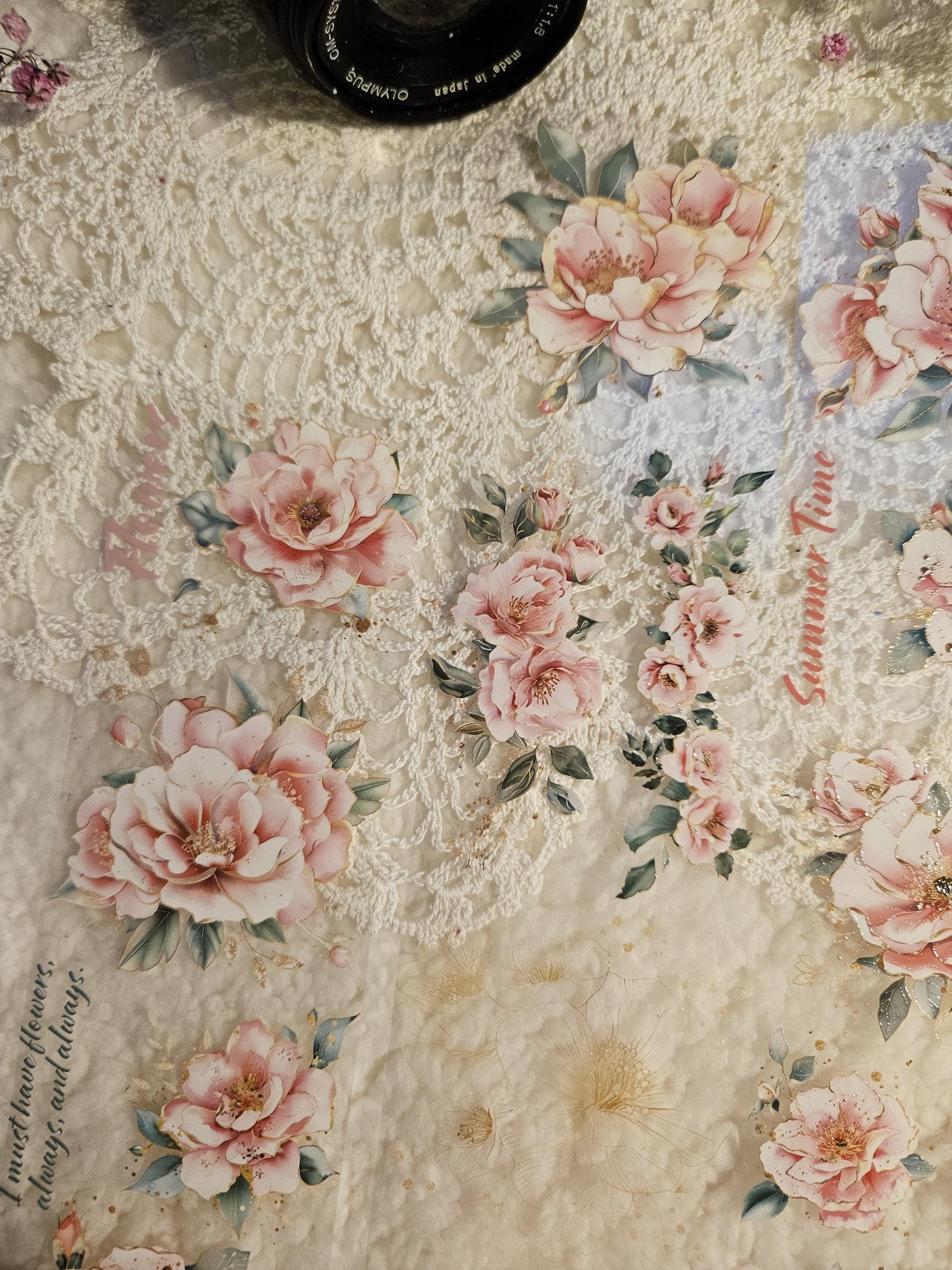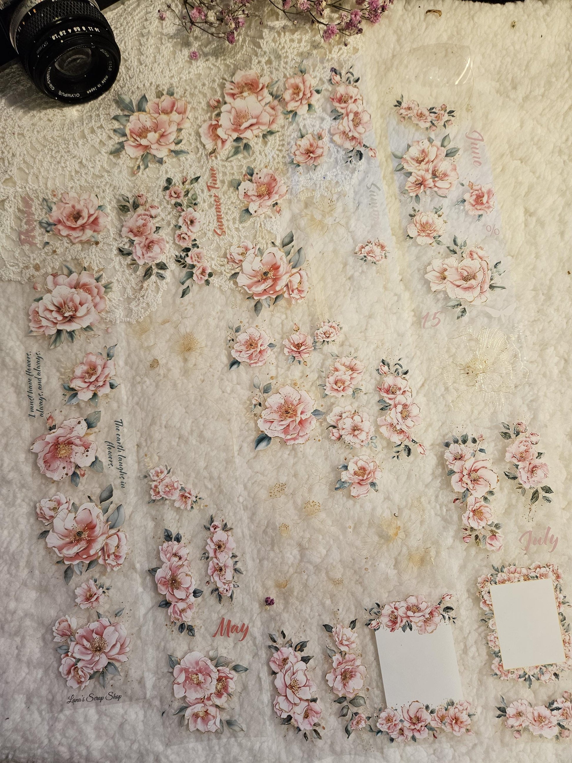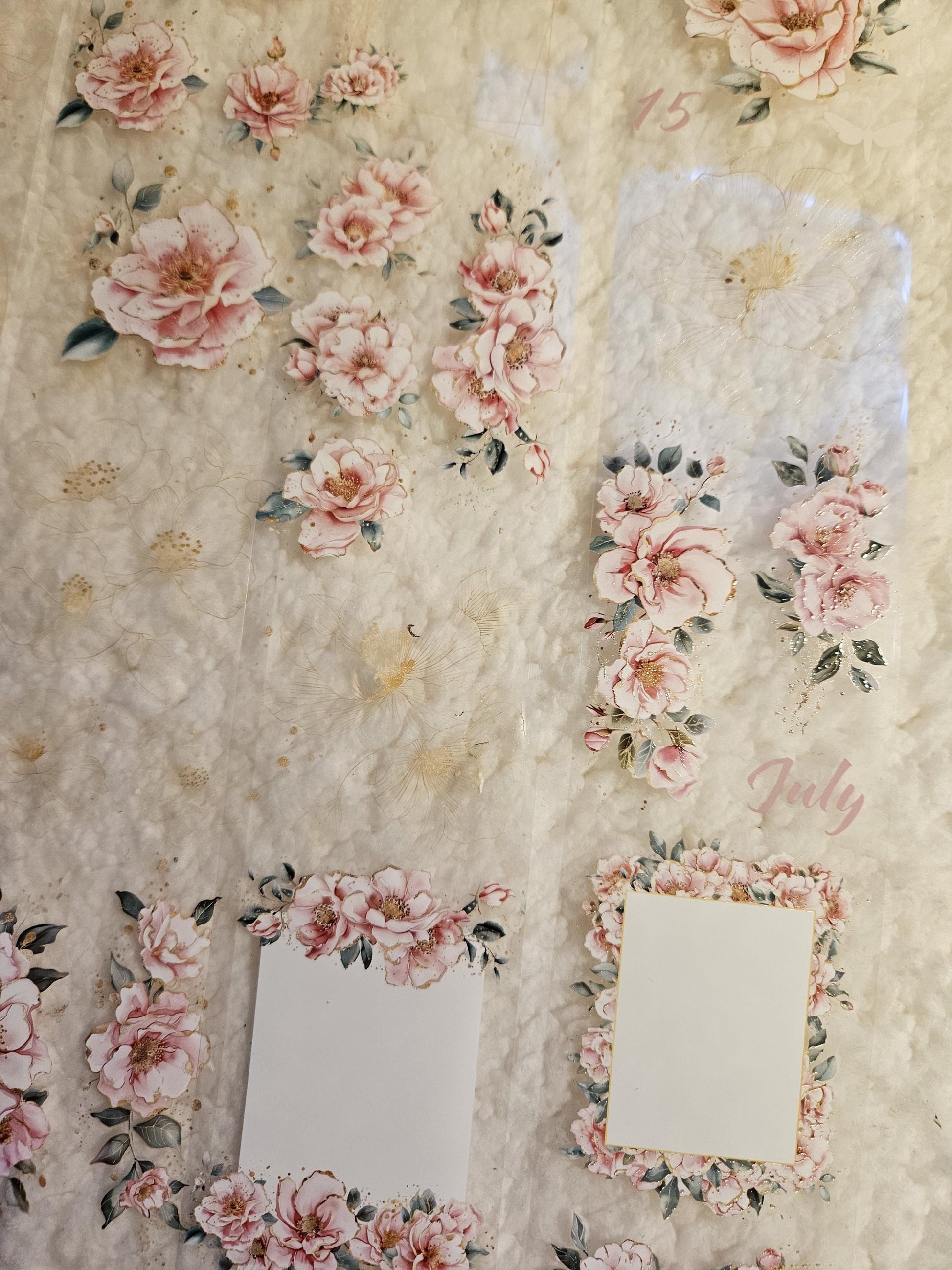 My decorated PET tapes are perfect for scrapbooking, journaling and all your creative projects. Made from high-quality clear or matte PET material, these tapes feature stunning illustrations created using AI technology (aven bought clipart), with crystal ink designs that add elegance and sparkle to any page. These tapes are a versatile tool to elevate your DIY crafts with ease and style.