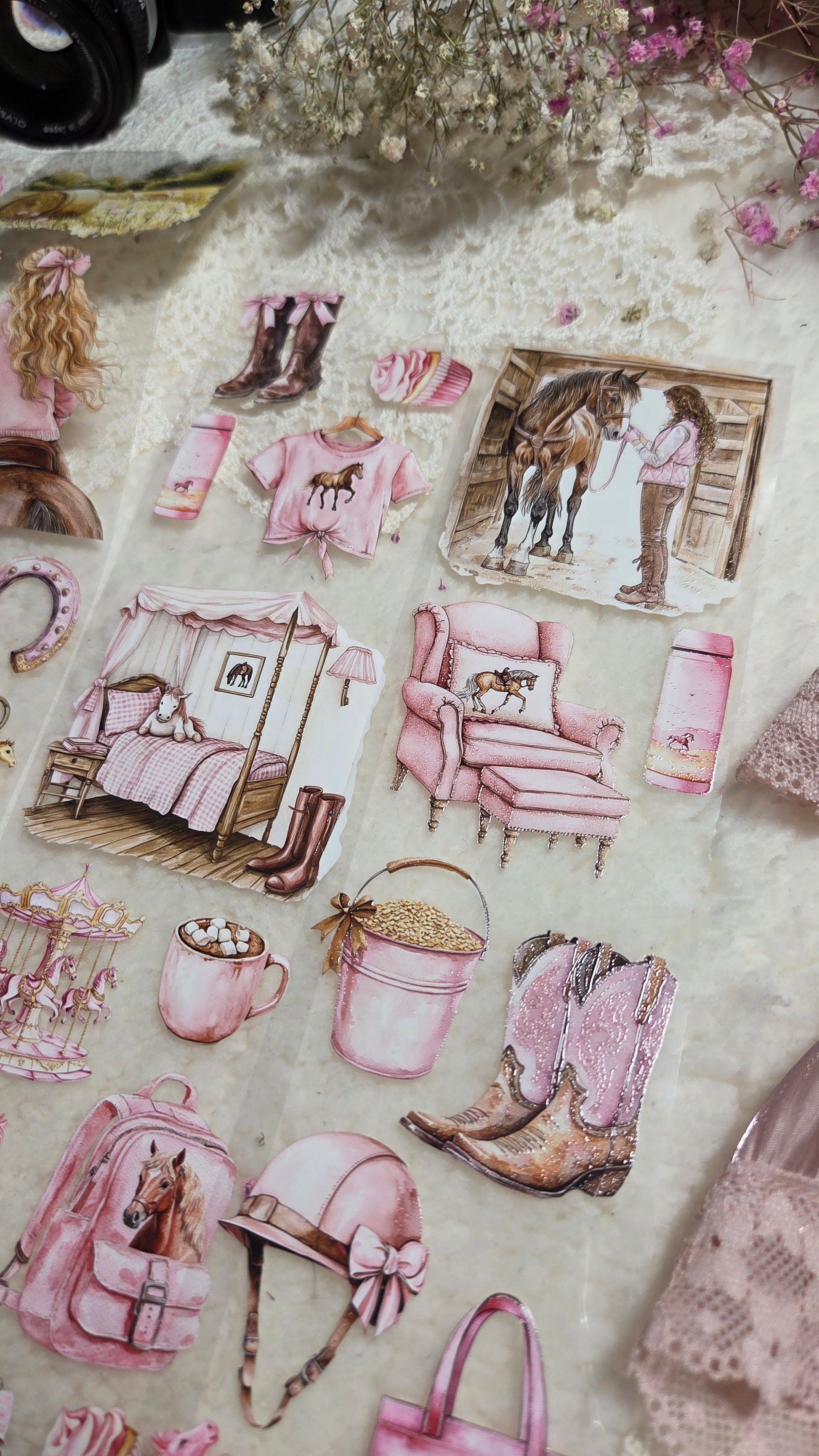 My decorated PET tapes are perfect for journaling but can be used in scrapbooking and other creative projects with extra glue support (glue tape for example). Made from high-quality clear or matte PET material, these tapes feature stunning illustrations created using AI technology (aven bought clipart), with crystal ink designs that add elegance and sparkle to any page. These tapes are a versatile tool to elevate your DIY crafts with ease and style.