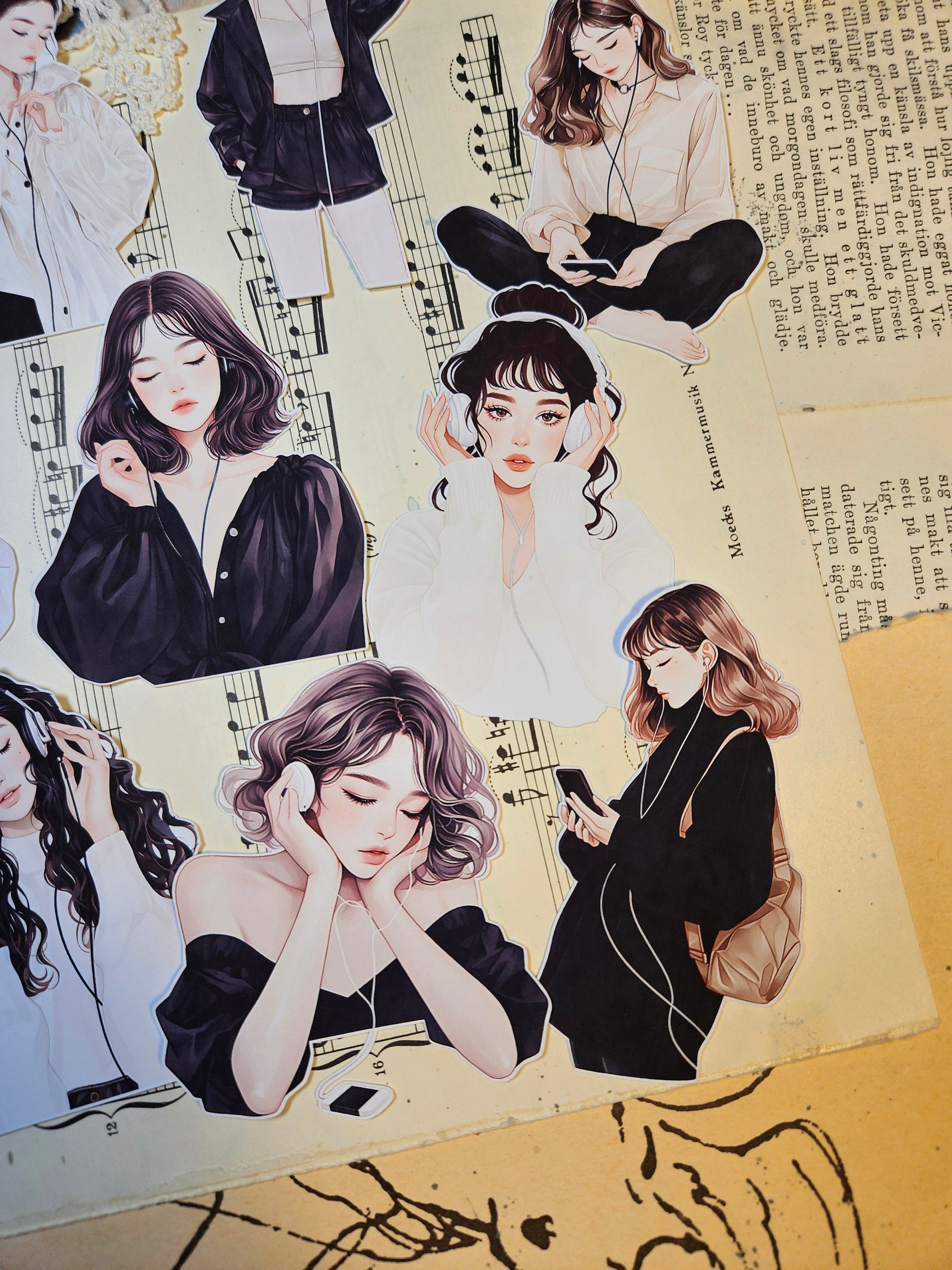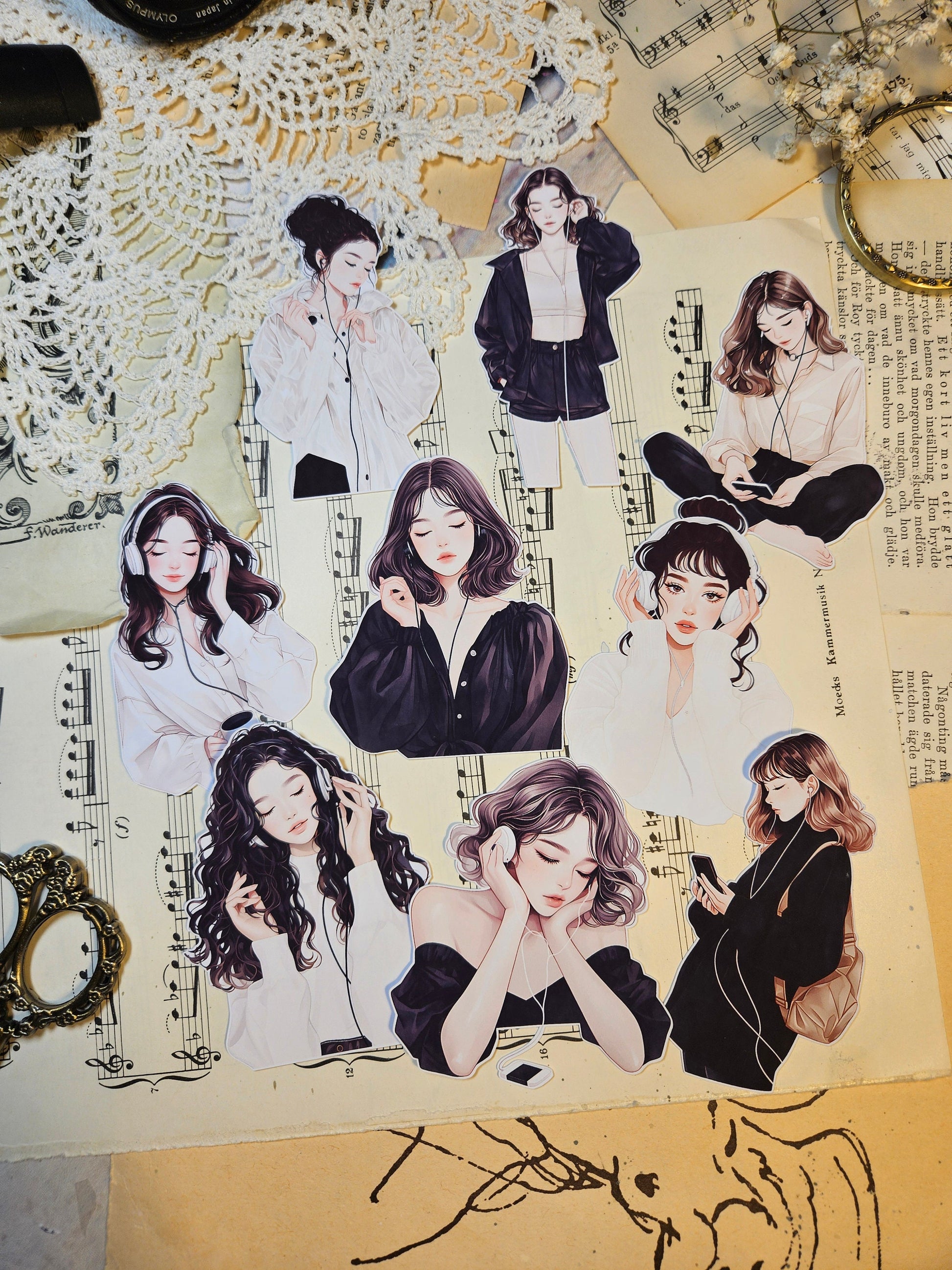 KOREAN SERIE: Music Lover Set of 9 Stickers | • Scrapbooking • Card Making • Art Journaling • Paper Craft • Junk Journal