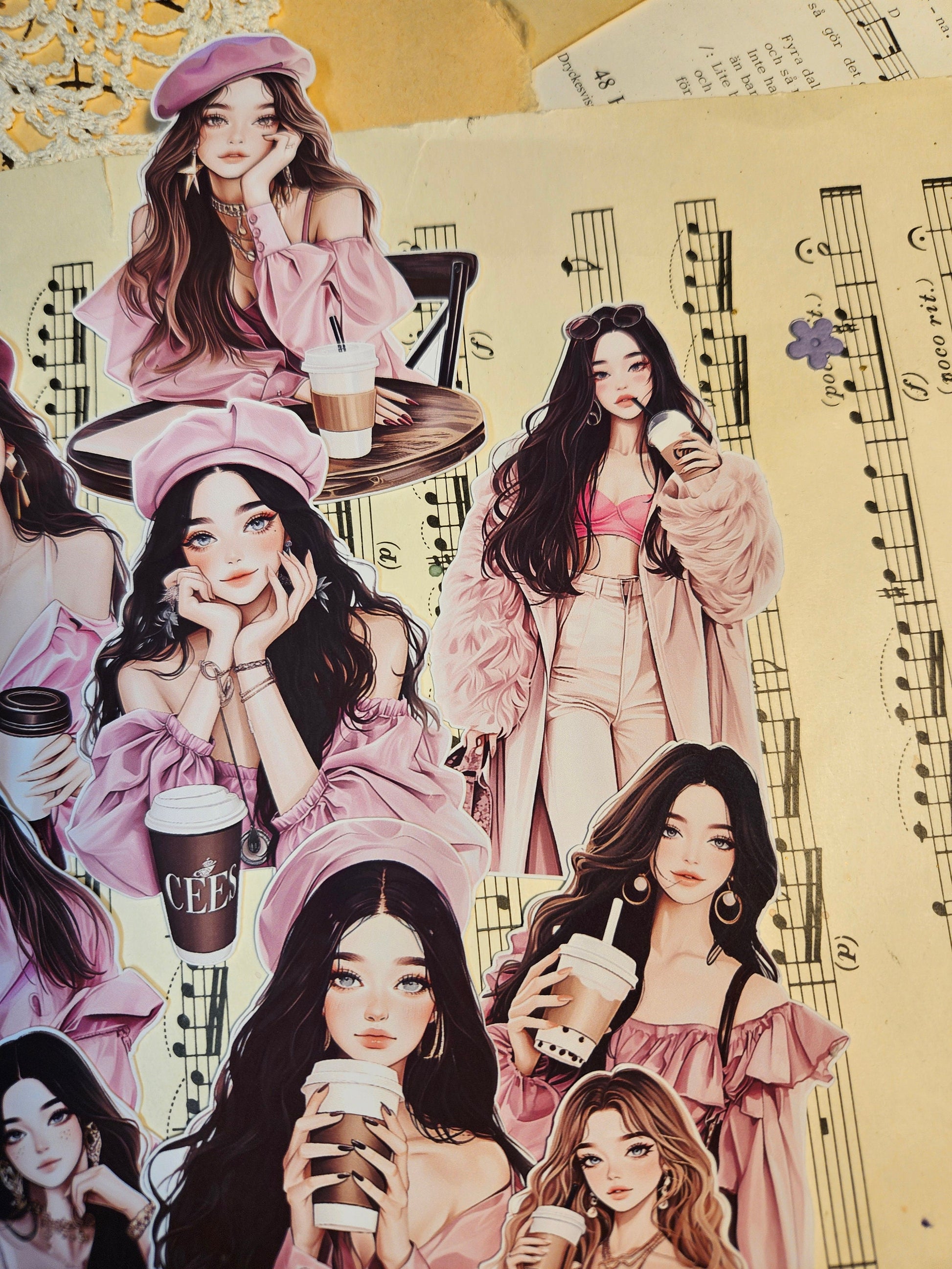 KOREAN SERIE: Parisian Coffee Lover Set of 9 Stickers | • Scrapbooking • Card Making • Art Journaling • Paper Craft • Junk Journal