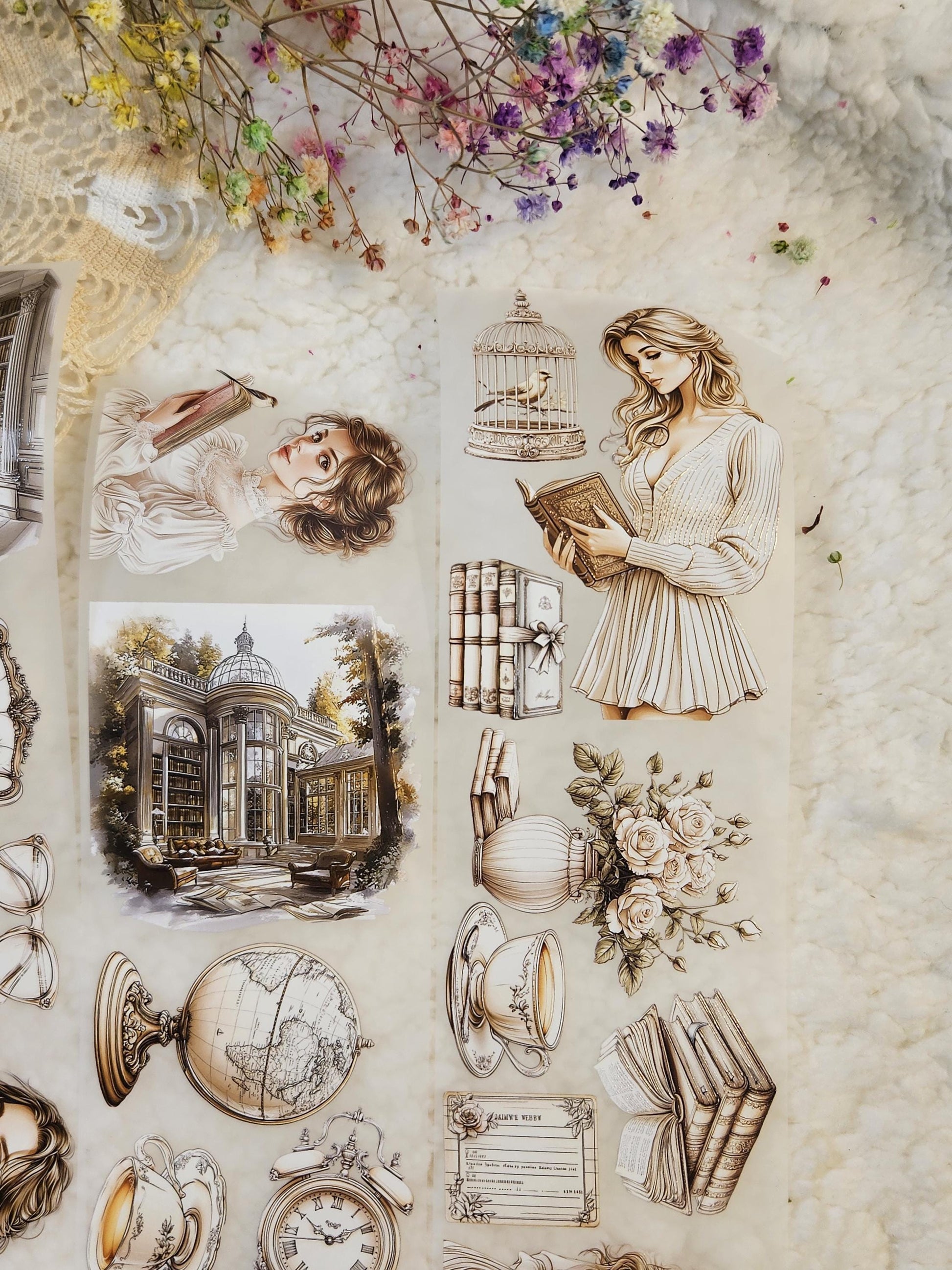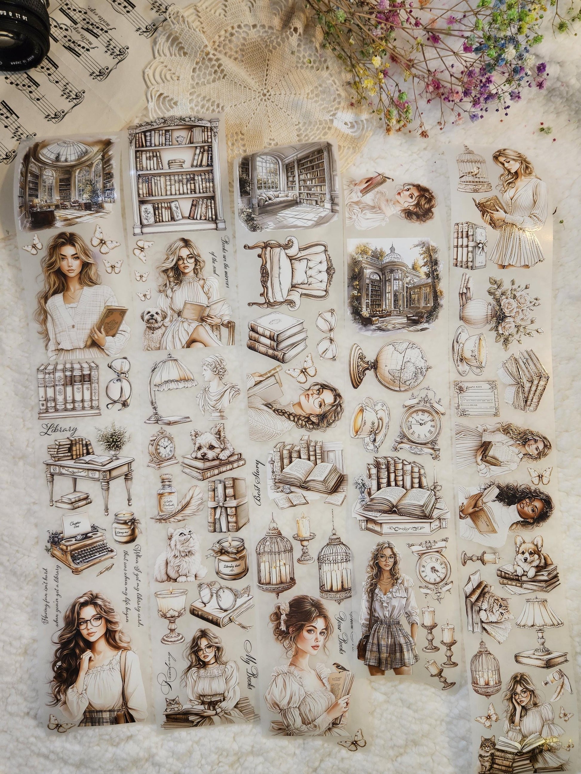 My decorated PET tapes are perfect for scrapbooking, journaling and all your creative projects. Made from high-quality clear or matte PET material, these tapes feature stunning illustrations created using AI technology (aven bought clipart), with crystal ink designs that add elegance and sparkle to any page. These tapes are a versatile tool to elevate your DIY crafts with ease and style.