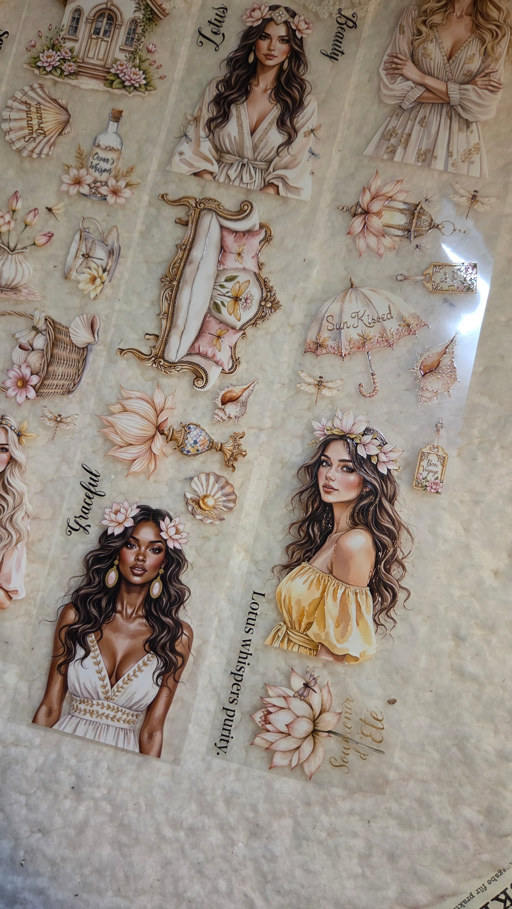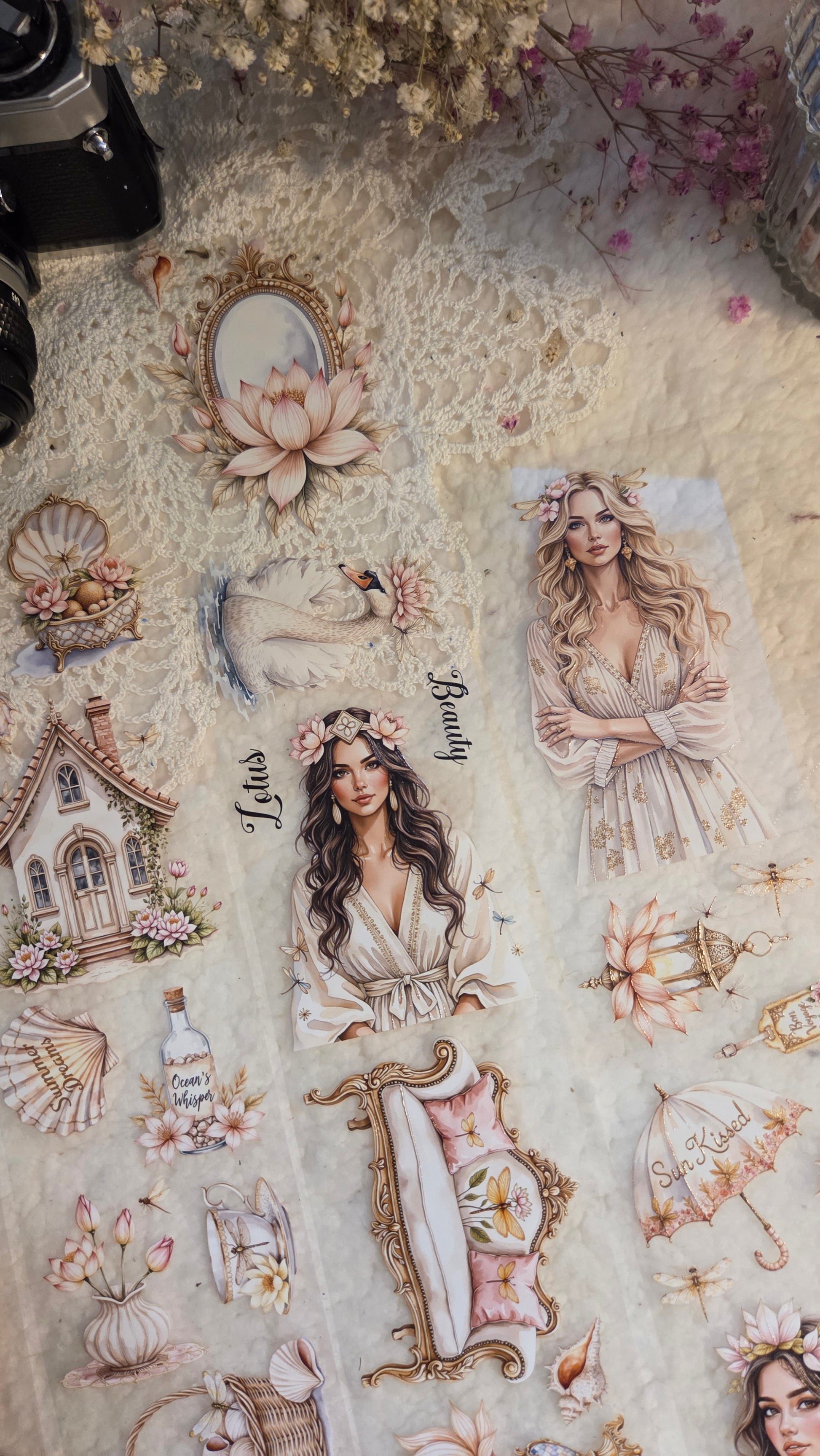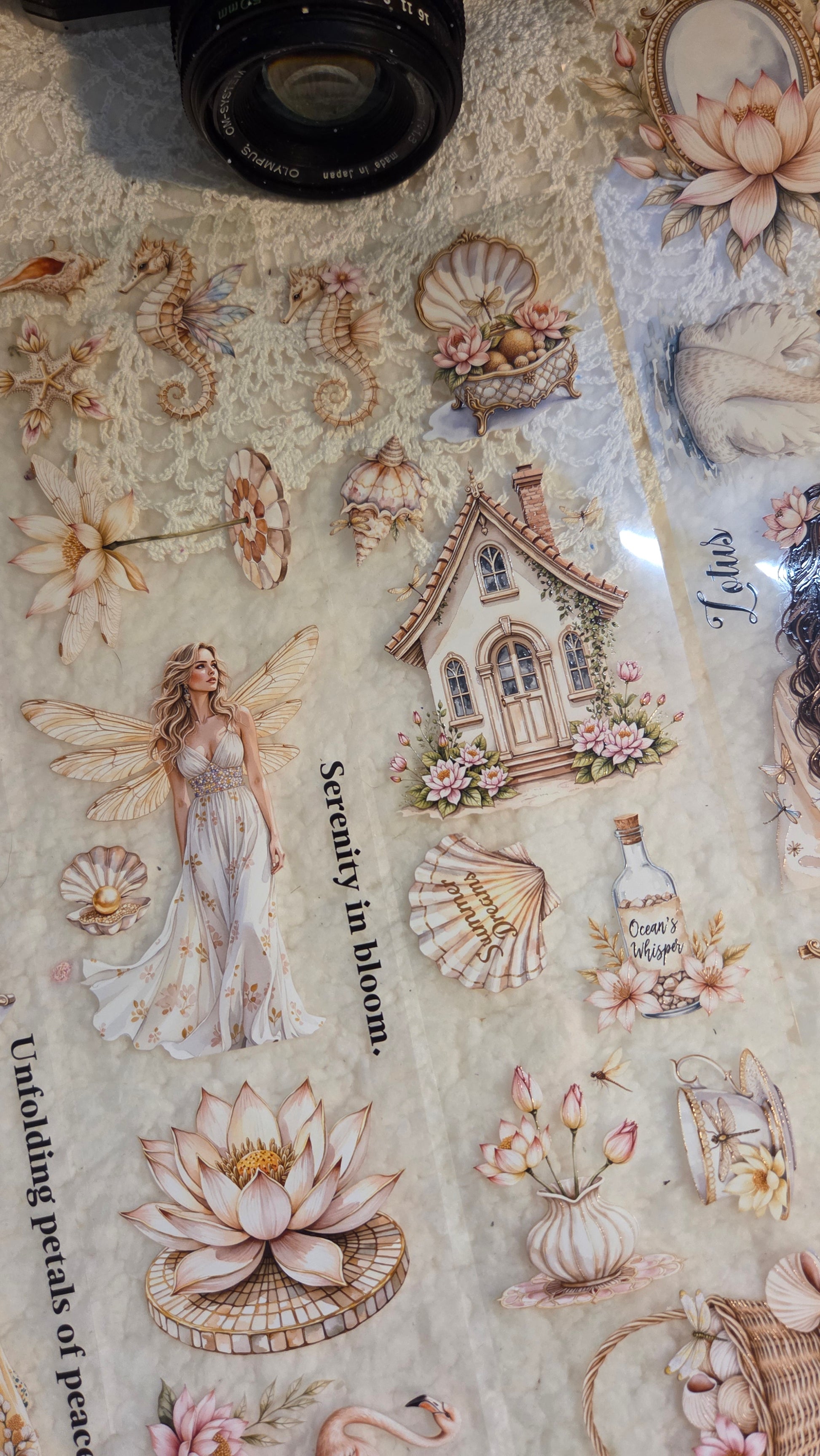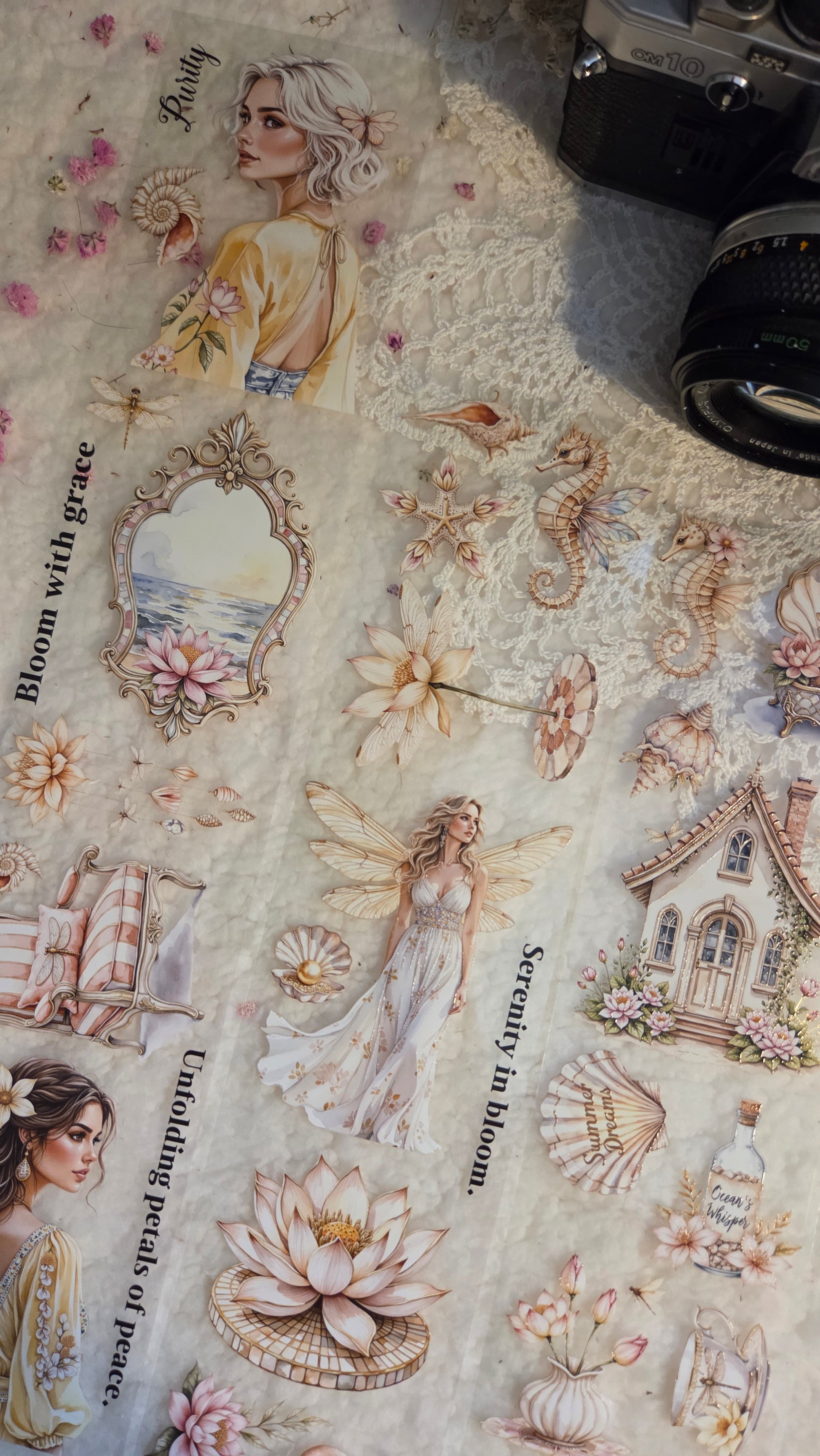My decorated PET tapes are perfect for journaling but can be used in scrapbooking and other creative projects with extra glue support (glue tape for example). Made from high-quality clear or matte PET material, these tapes feature stunning illustrations created using AI technology (aven bought clipart), with crystal ink designs that add elegance and sparkle to any page. These tapes are a versatile tool to elevate your DIY crafts with ease and style.