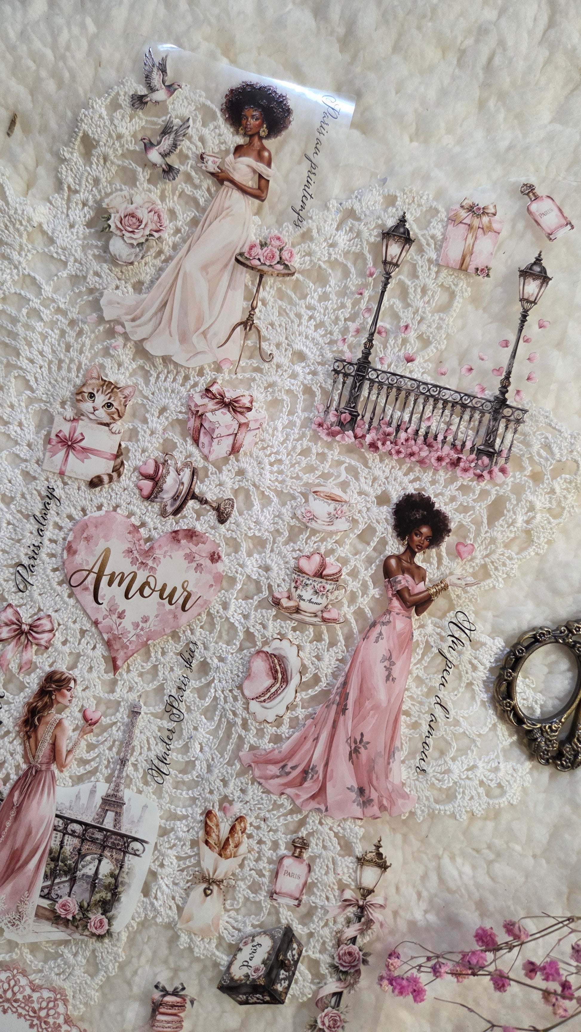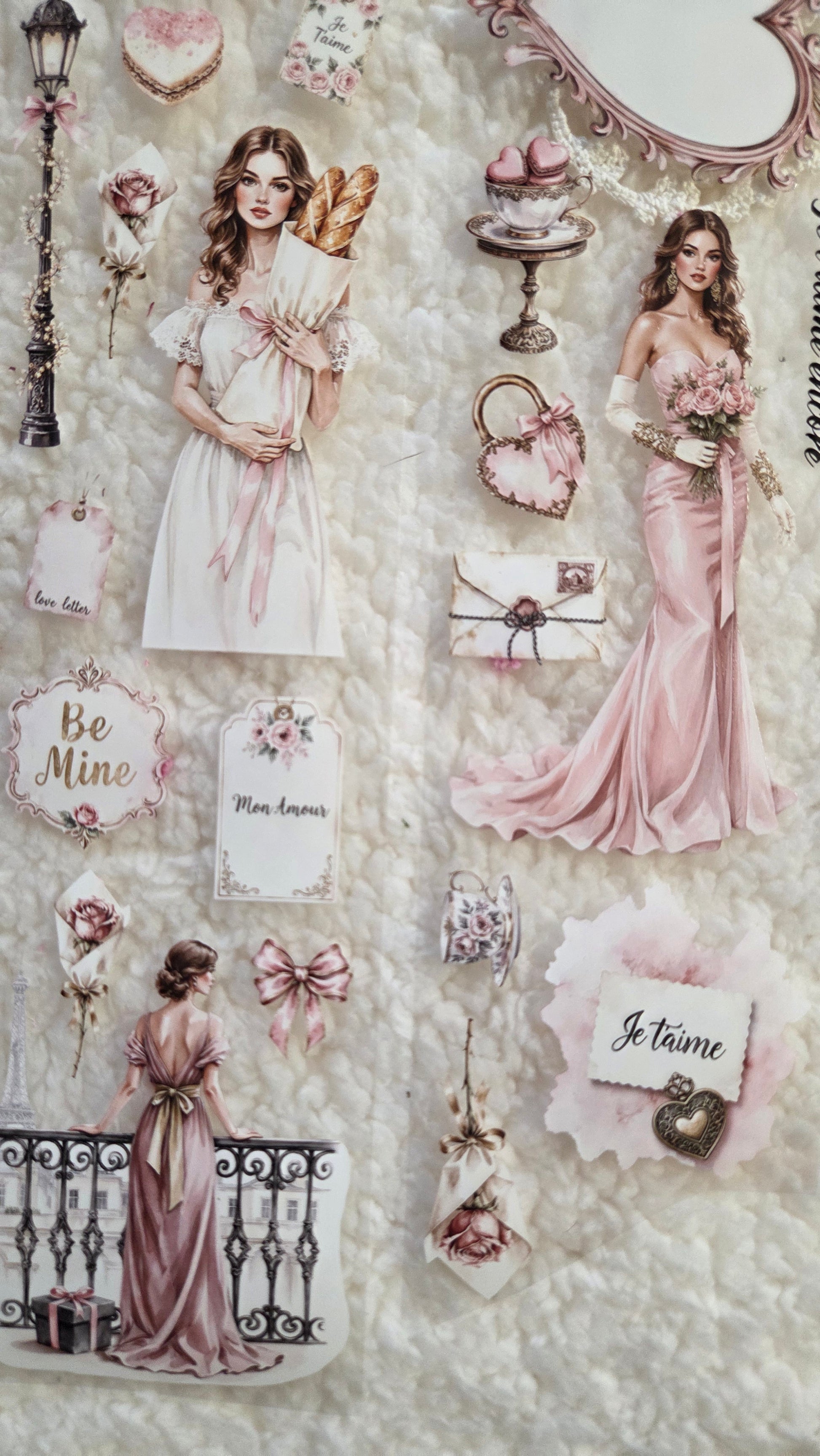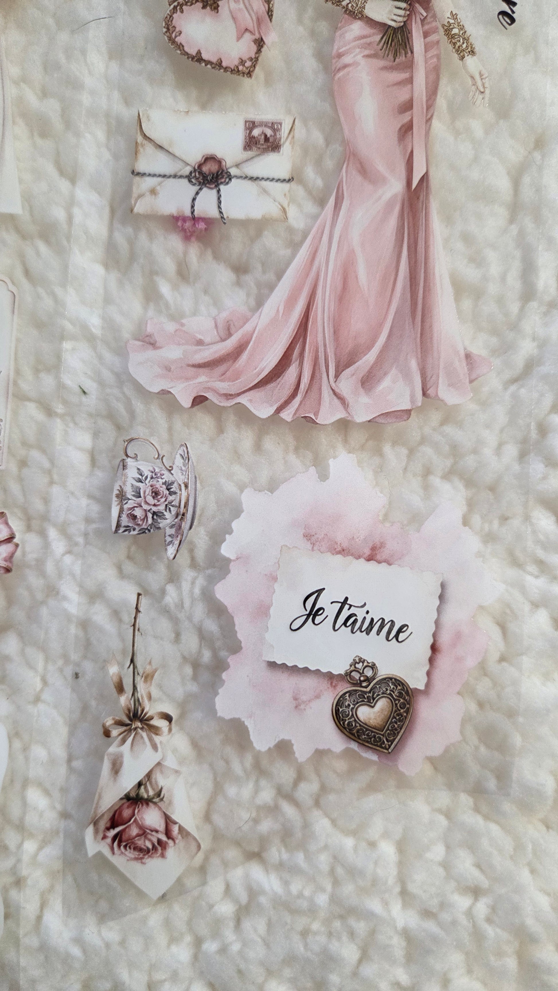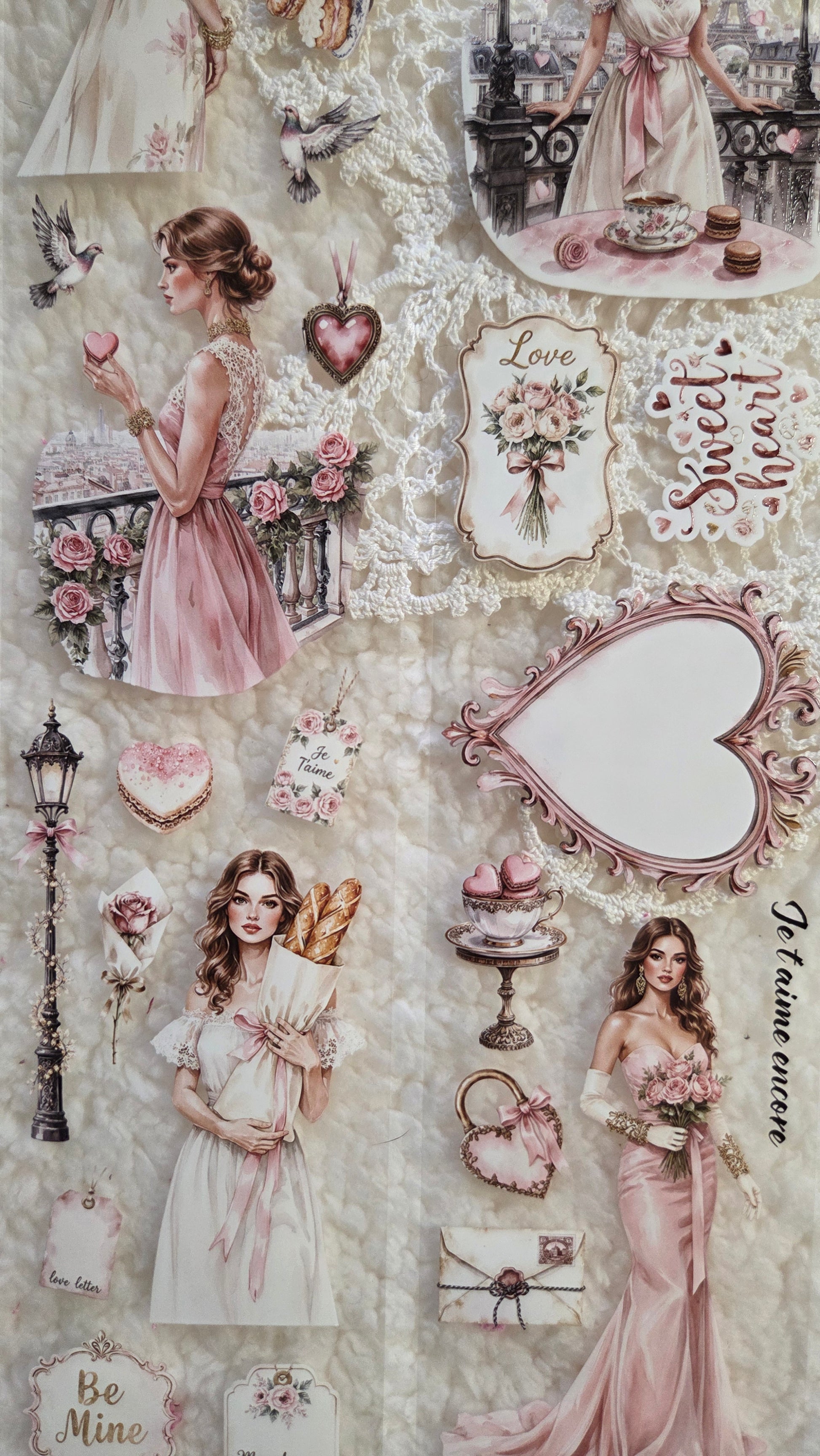 The soft romantic palette makes it perfect for travel journals, planners, scrapbooking, and romantic-themed stationery.
