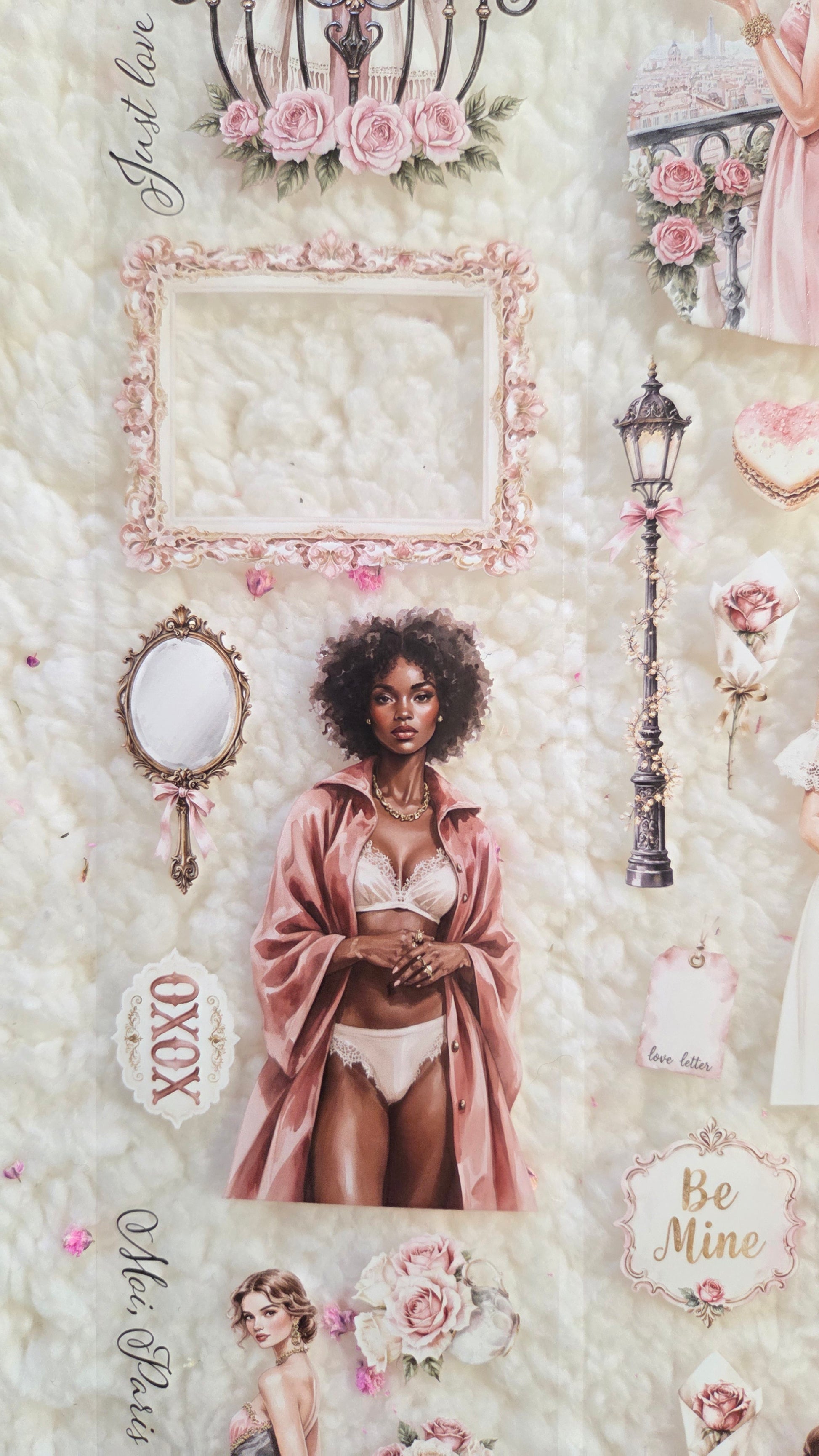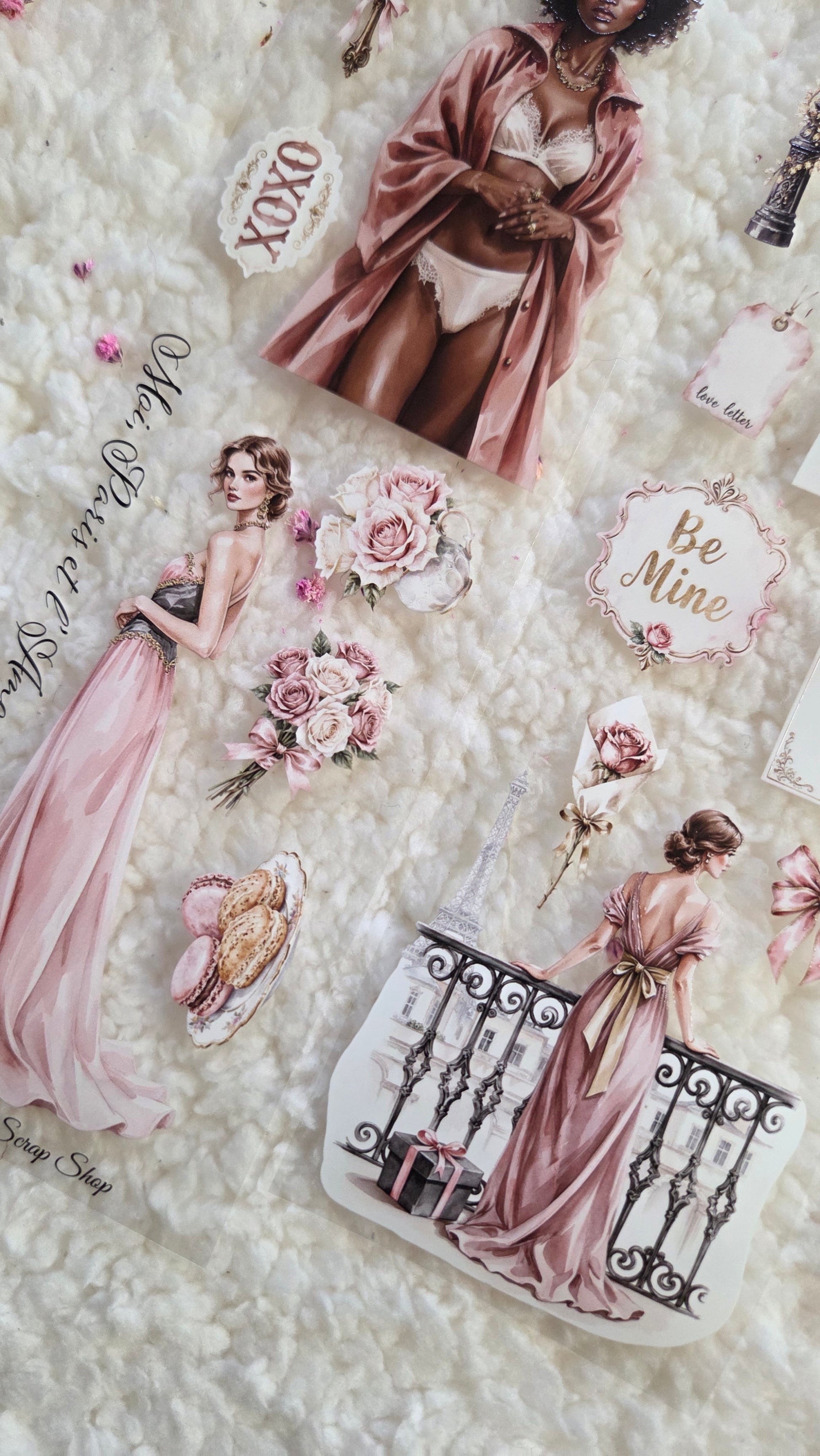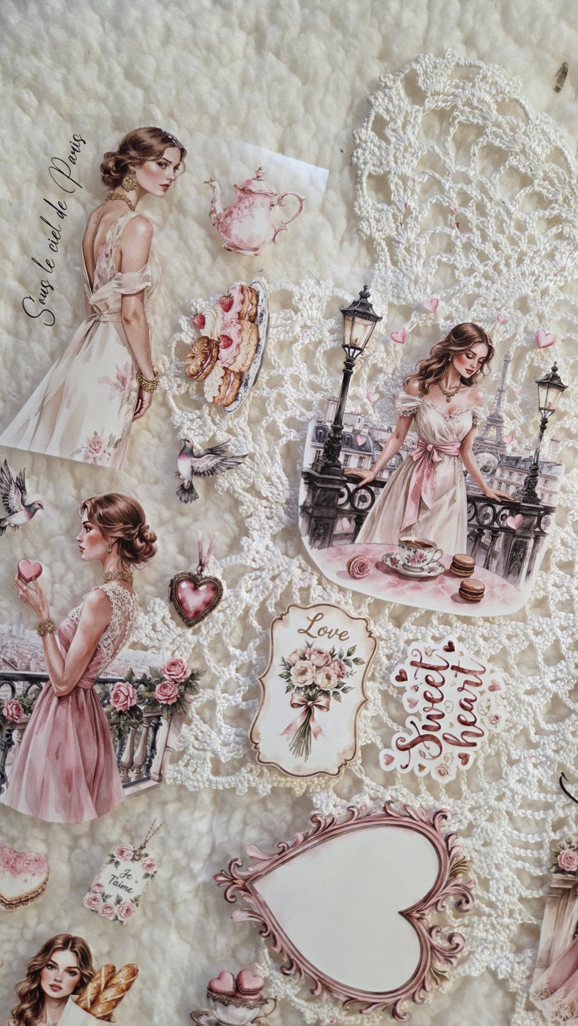 The soft romantic palette makes it perfect for travel journals, planners, scrapbooking, and romantic-themed stationery.