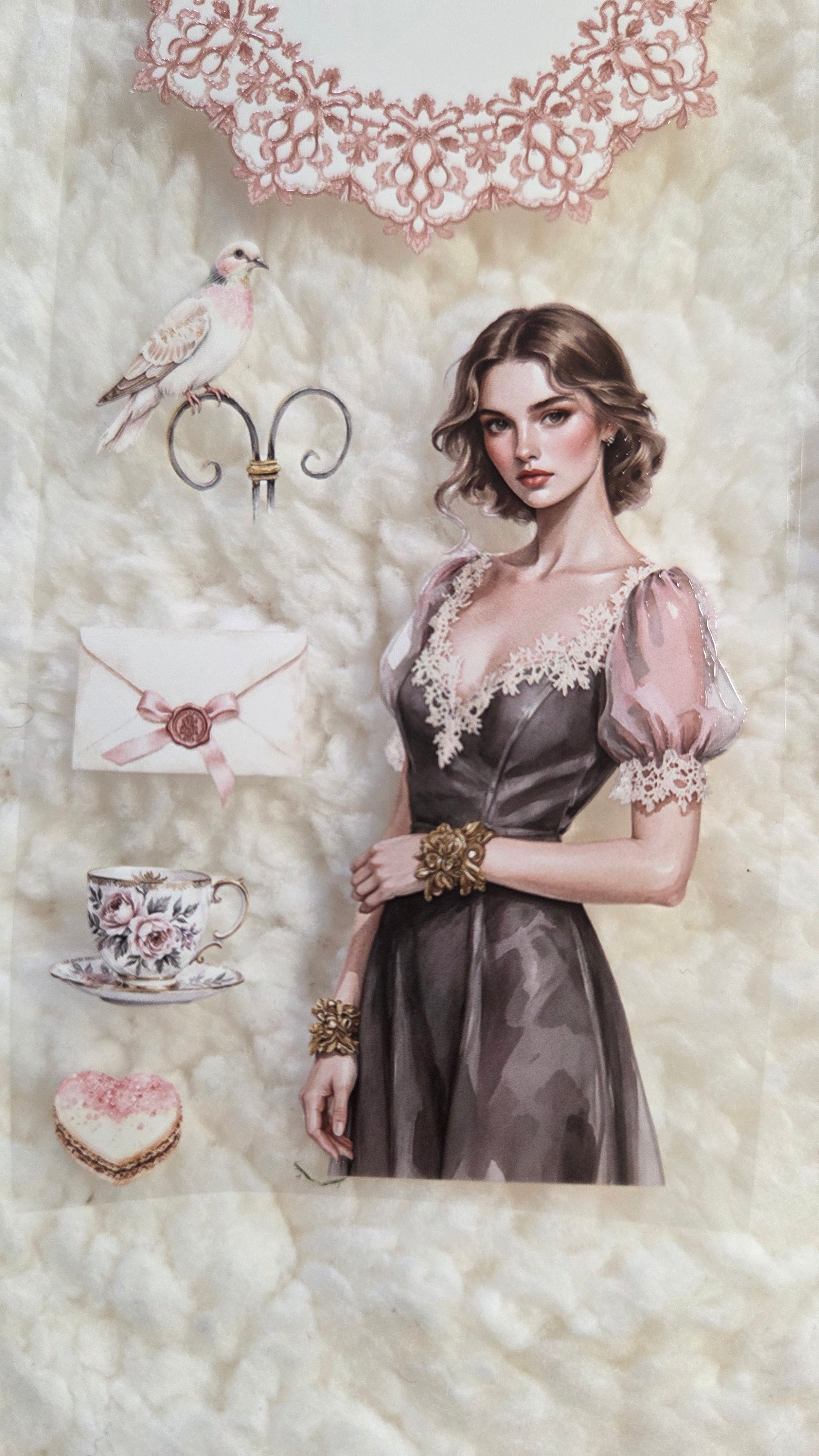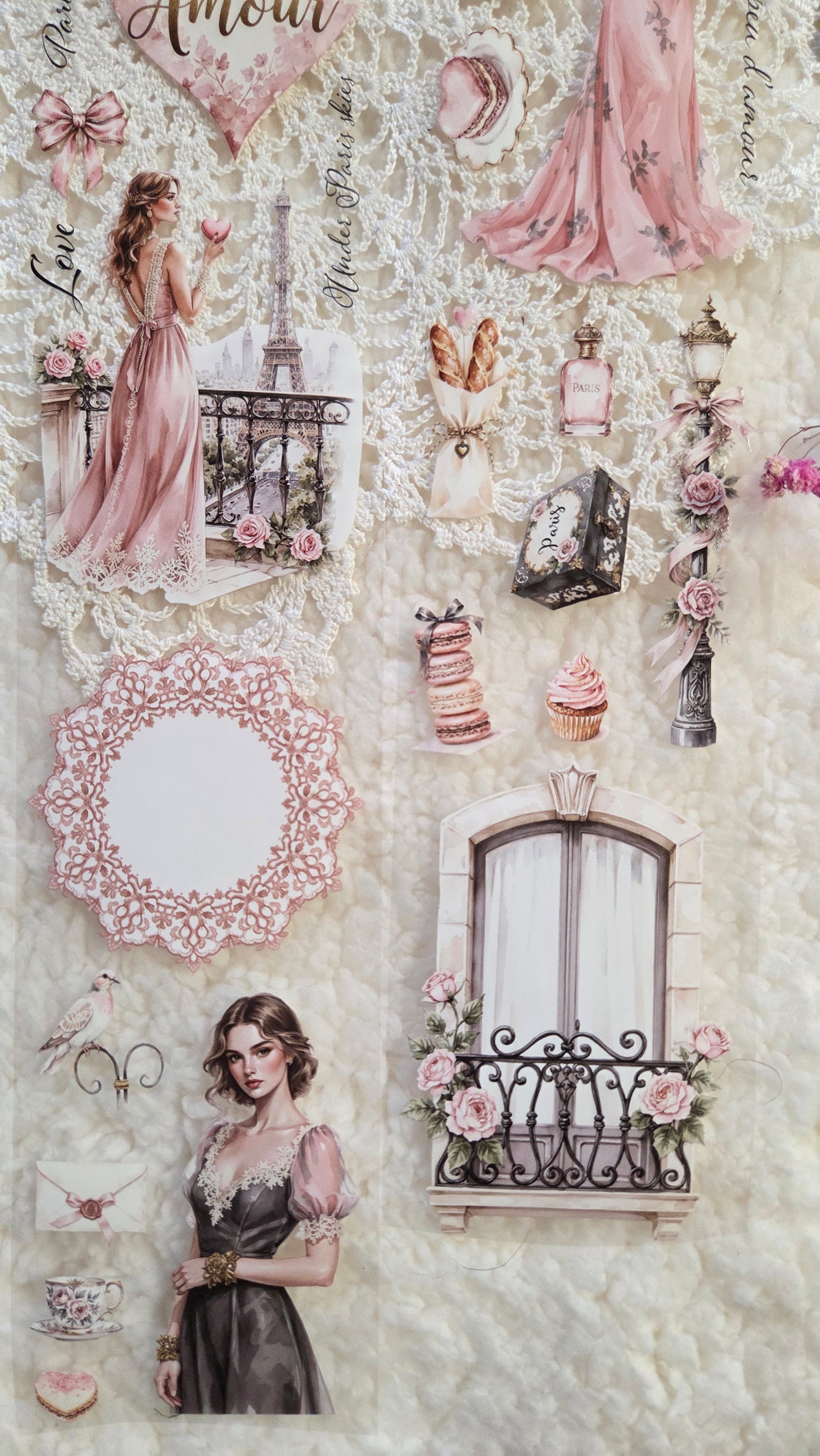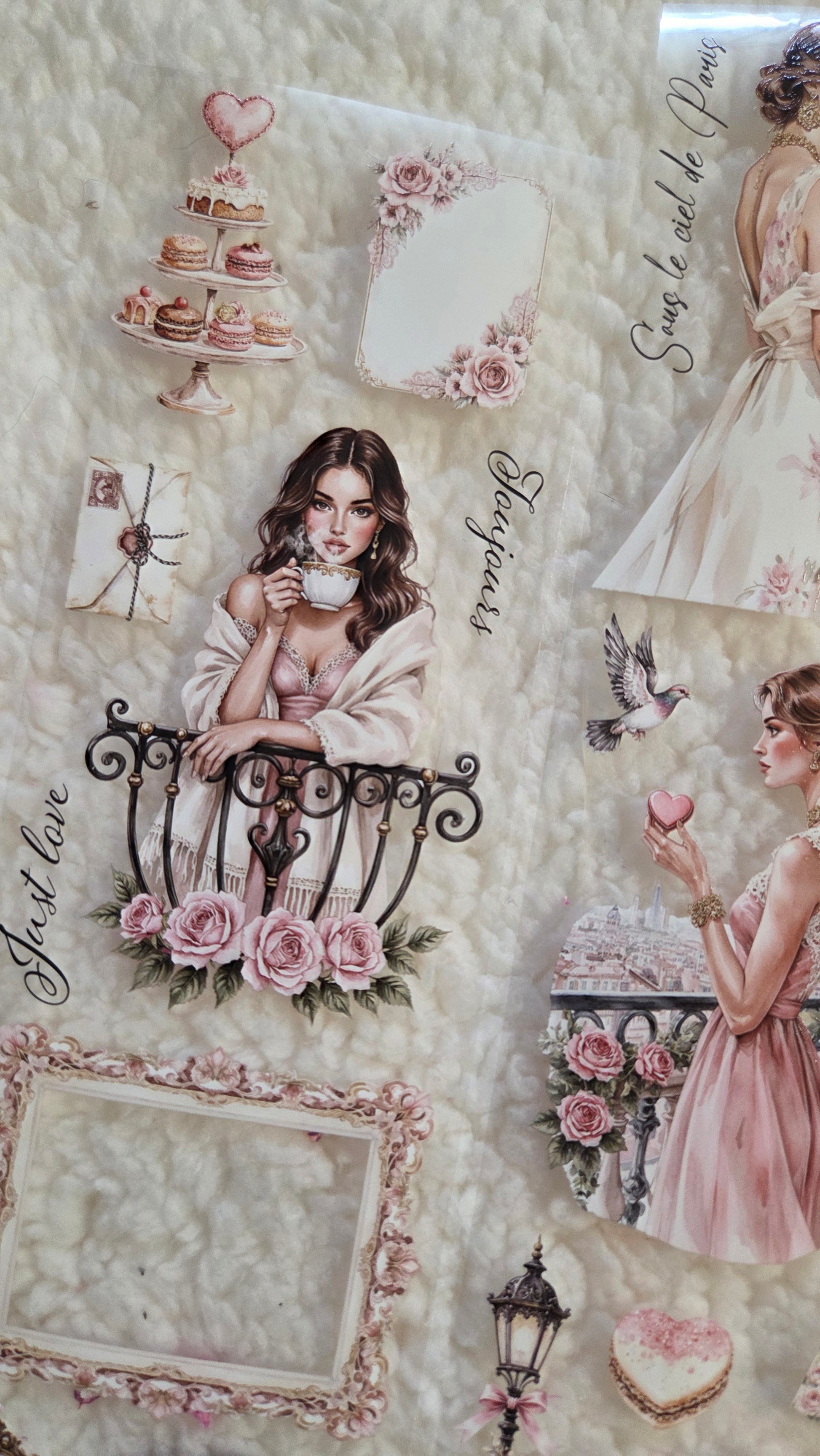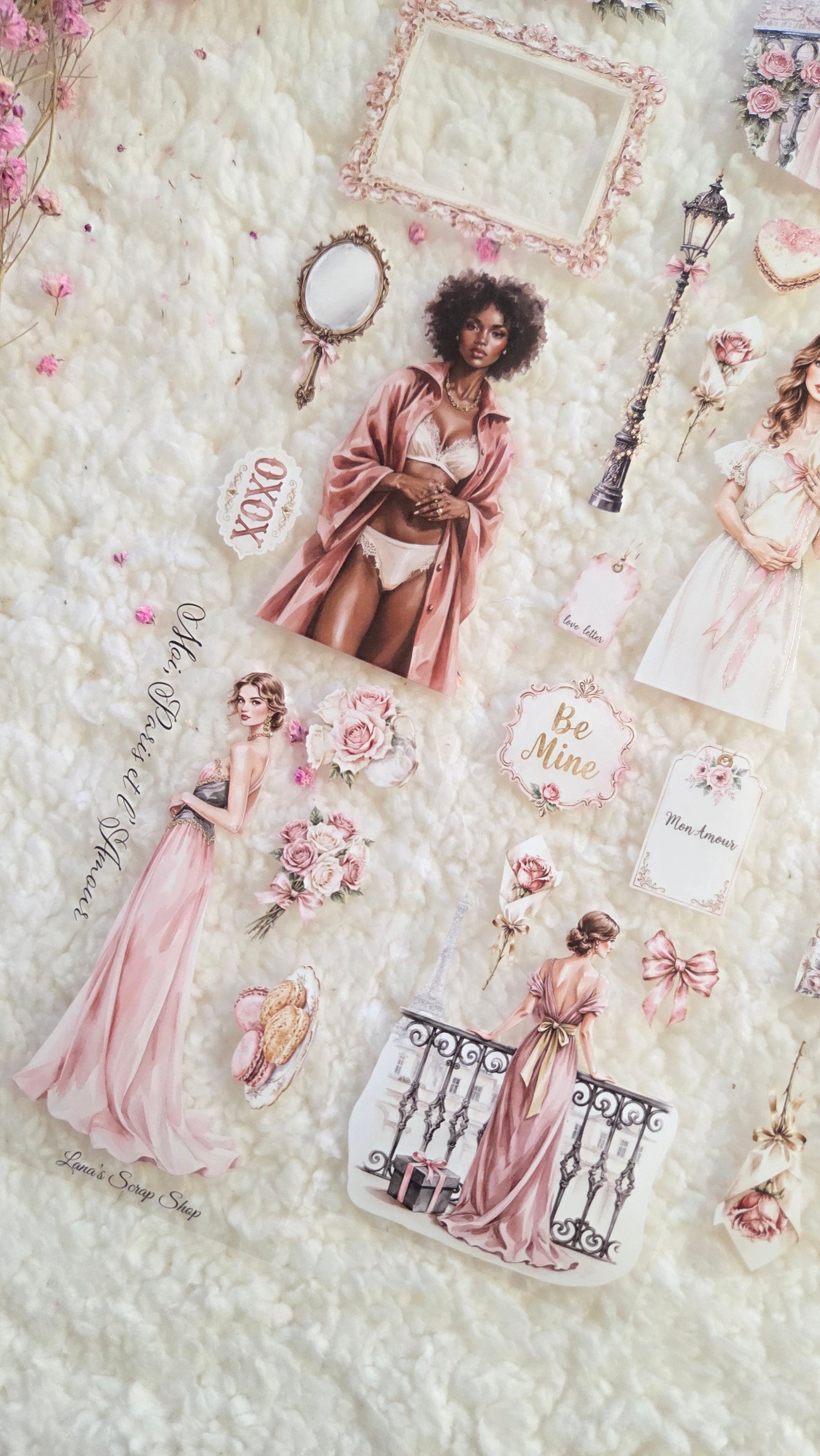 The soft romantic palette makes it perfect for travel journals, planners, scrapbooking, and romantic-themed stationery.