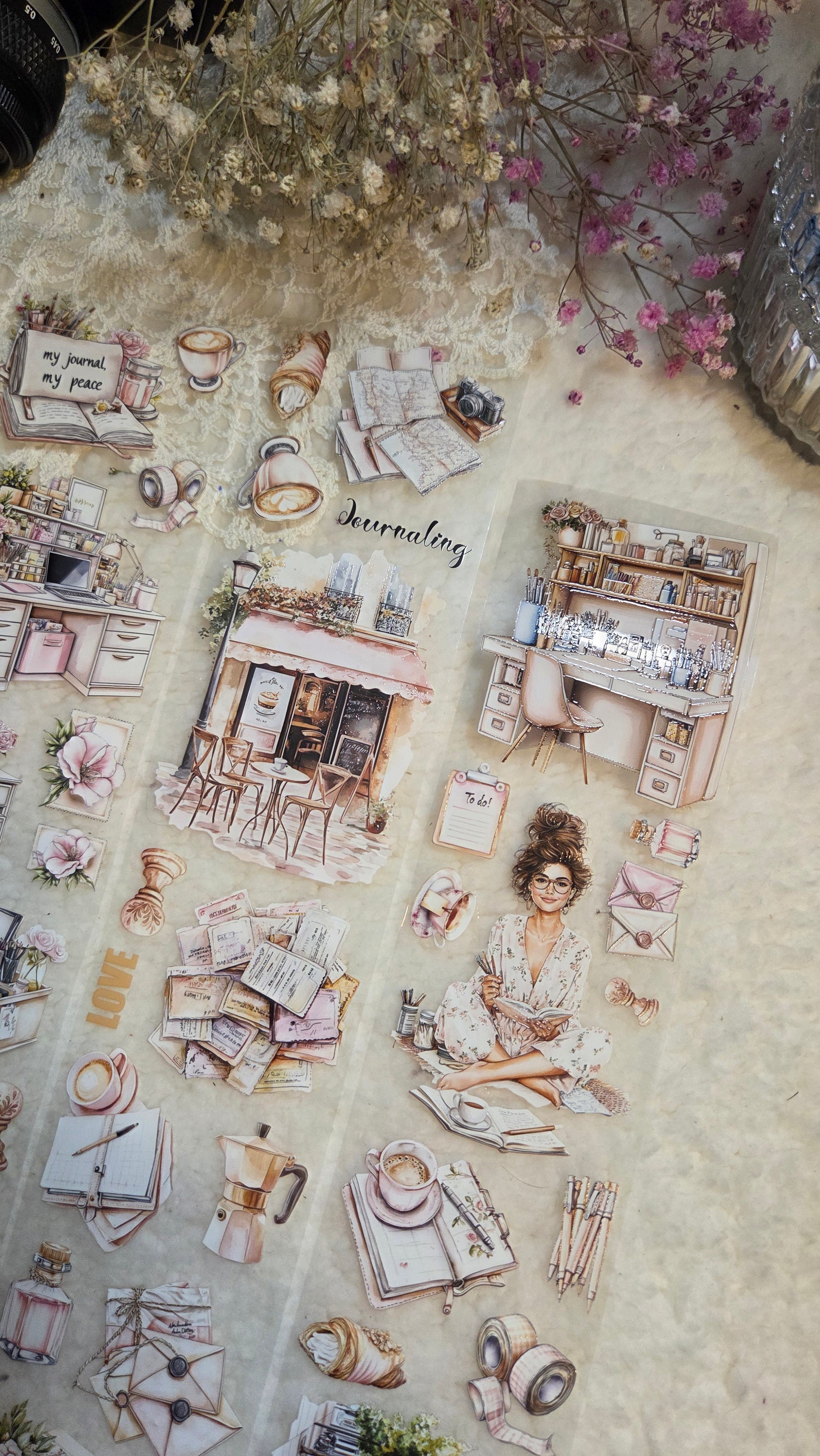 My decorated PET tapes are perfect for journaling but can be used in scrapbooking and other creative projects with extra glue support (glue tape for example). Made from high-quality clear or matte PET material, these tapes feature stunning illustrations created using AI technology (aven bought clipart), with crystal ink designs that add elegance and sparkle to any page. These tapes are a versatile tool to elevate your DIY crafts with ease and style.