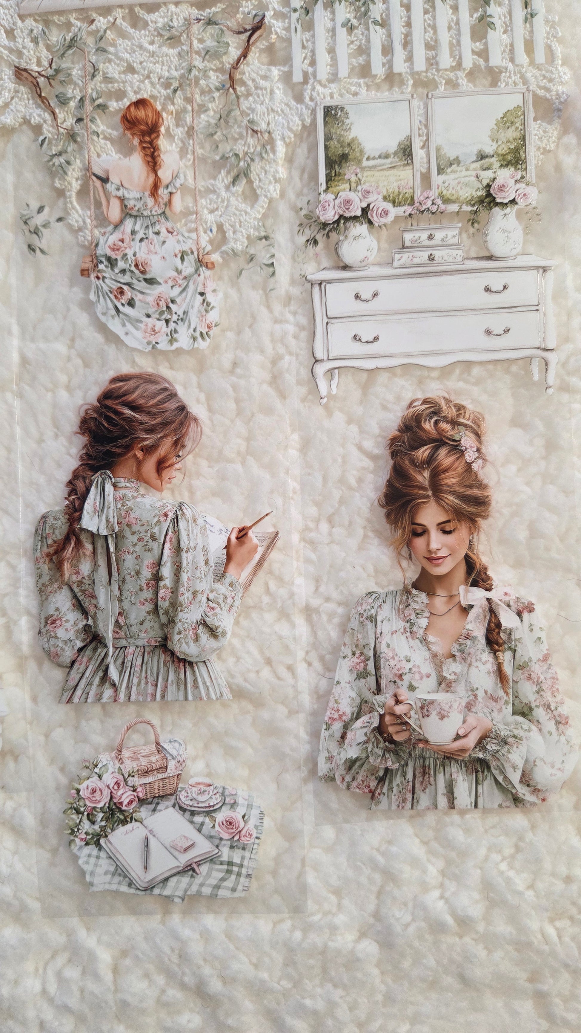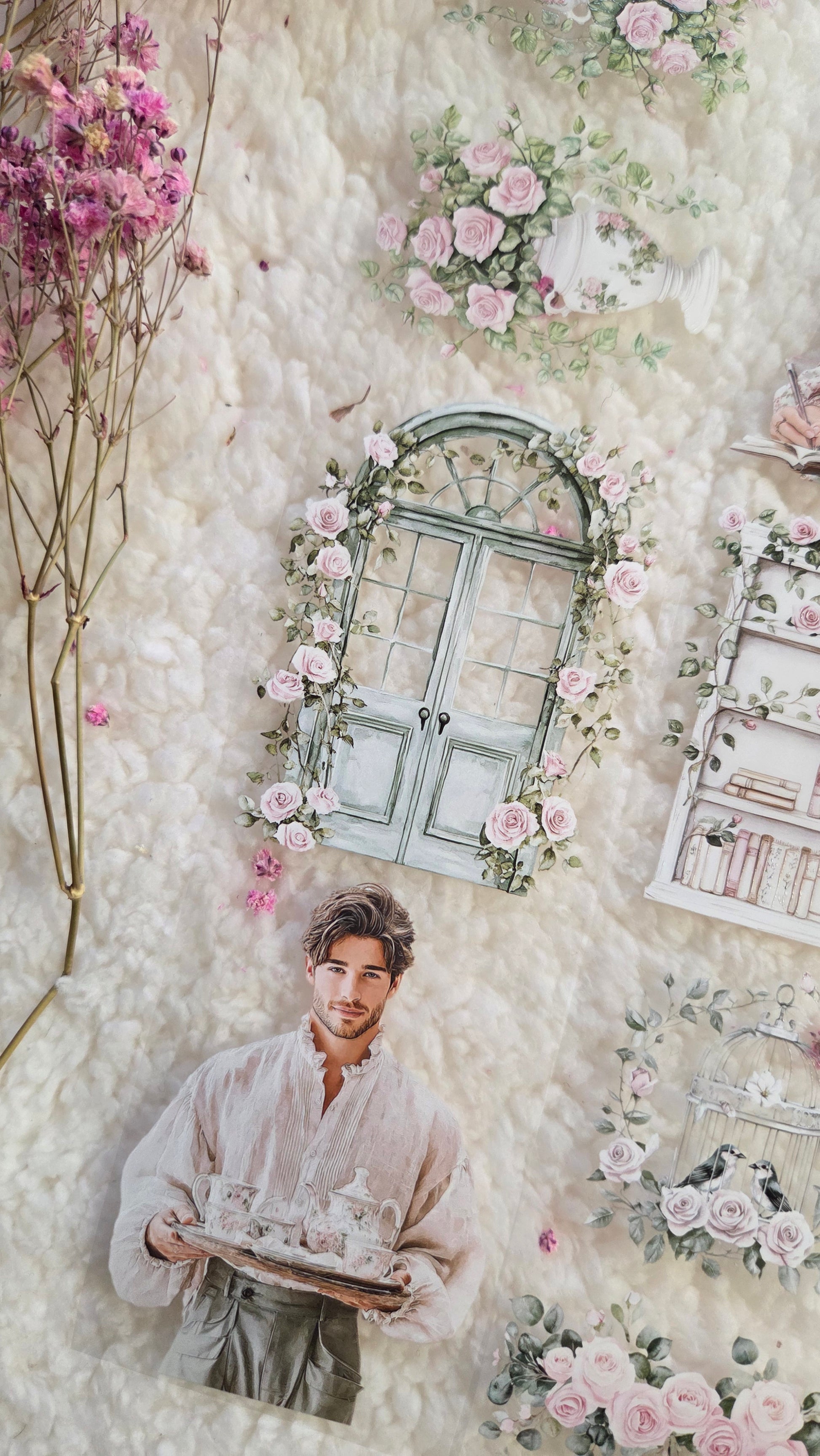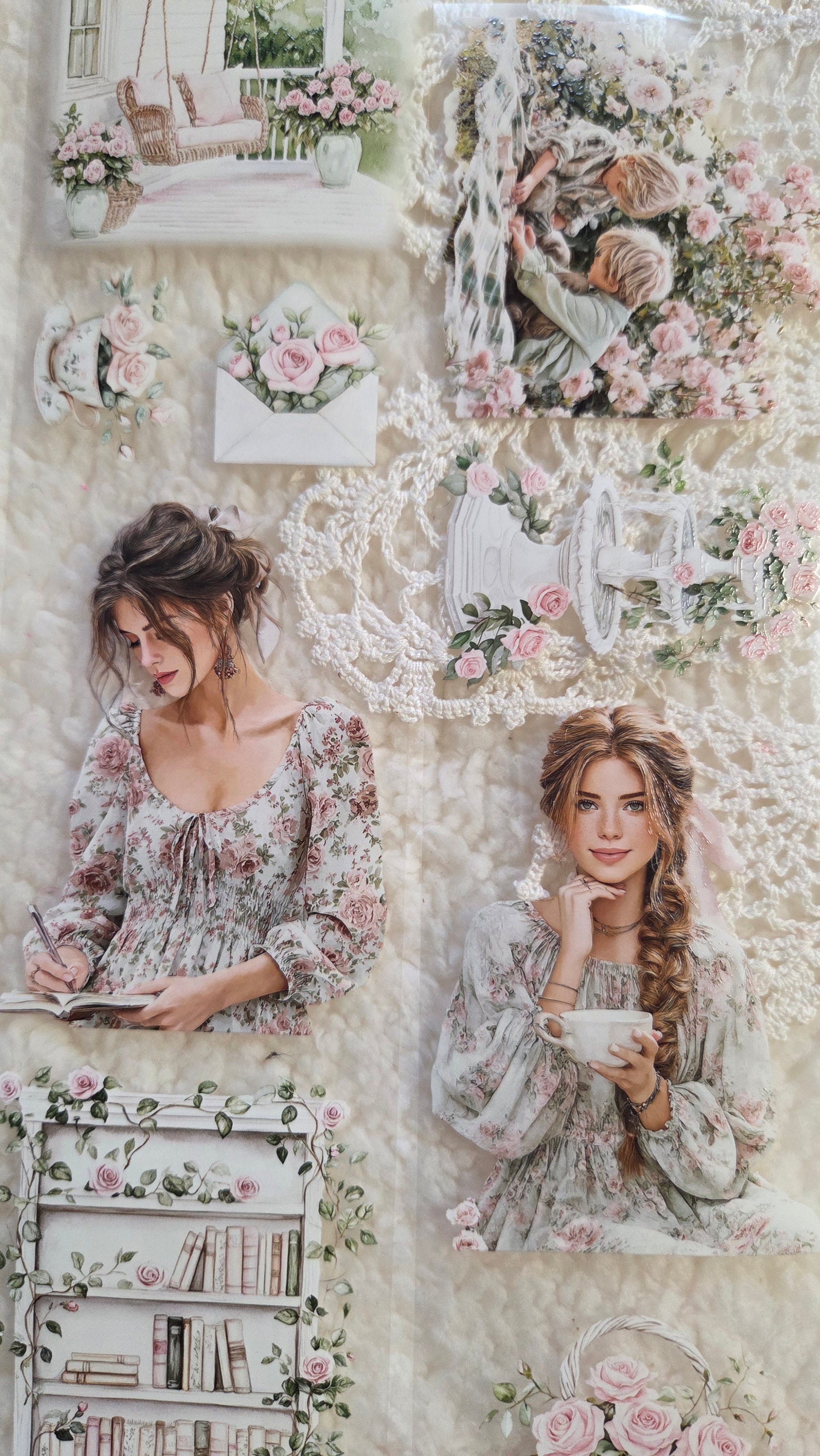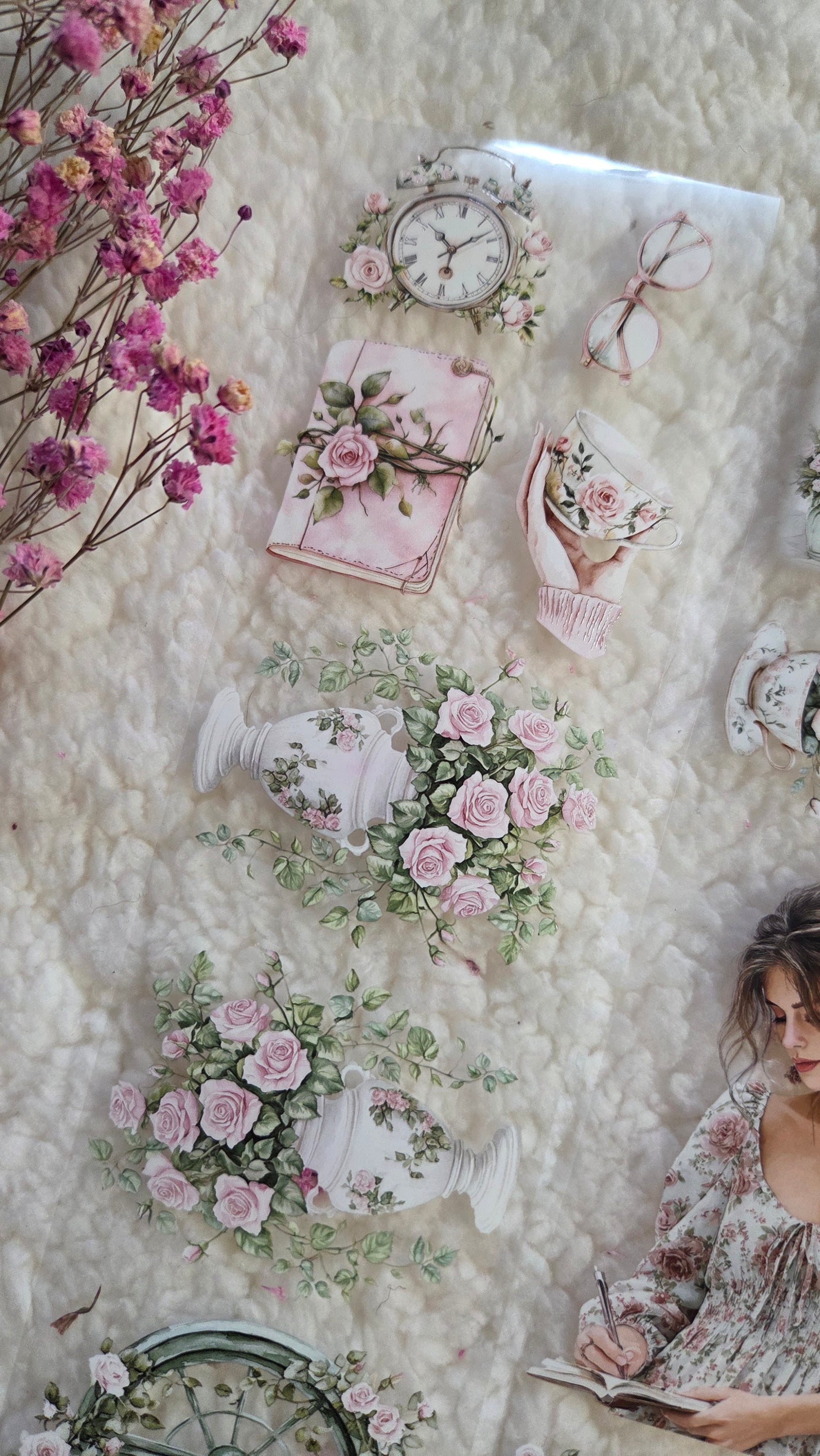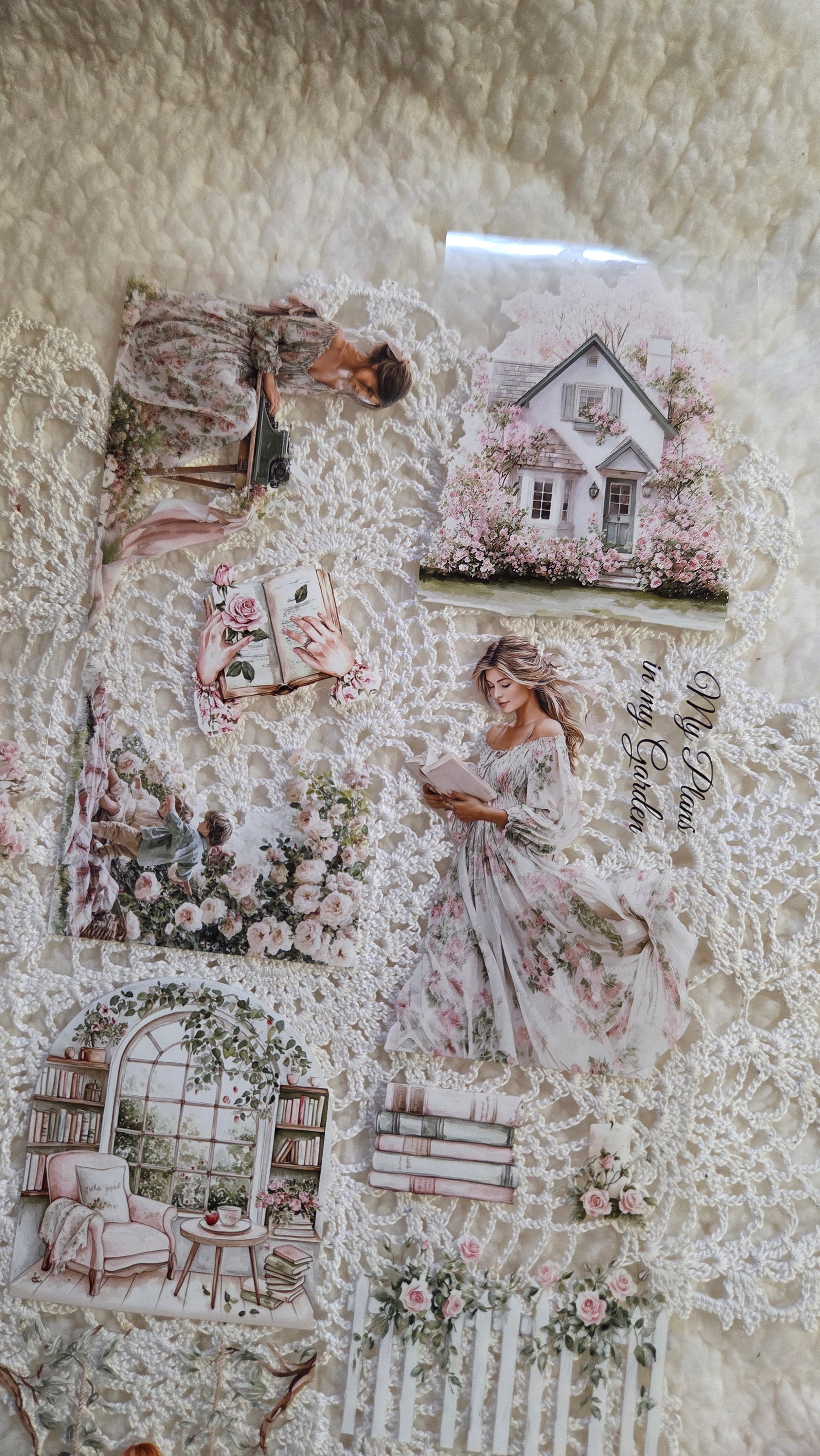 A romantic garden-inspired PET tape filled with flowers, peaceful reading moments, and charming cottage scenes.