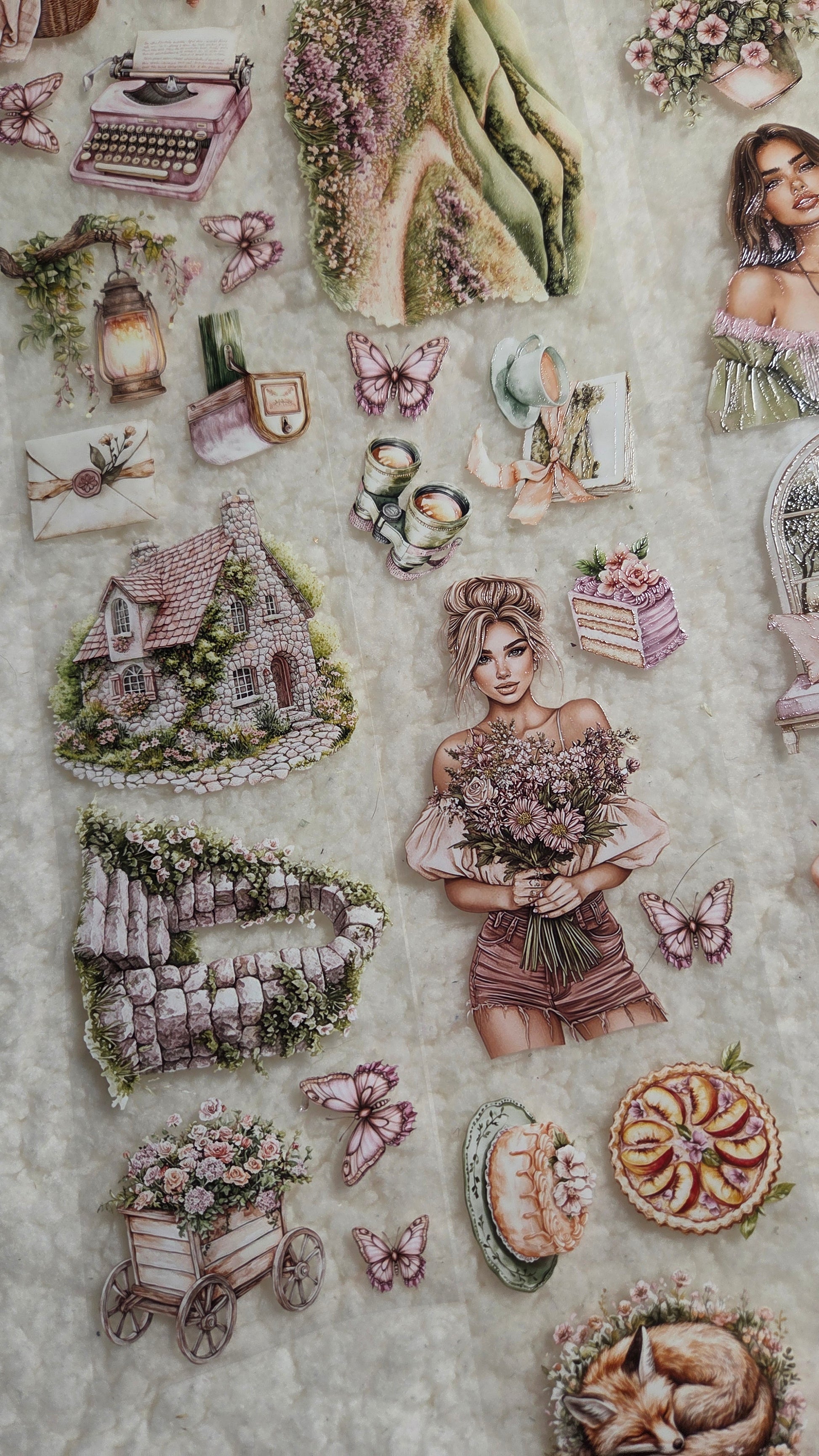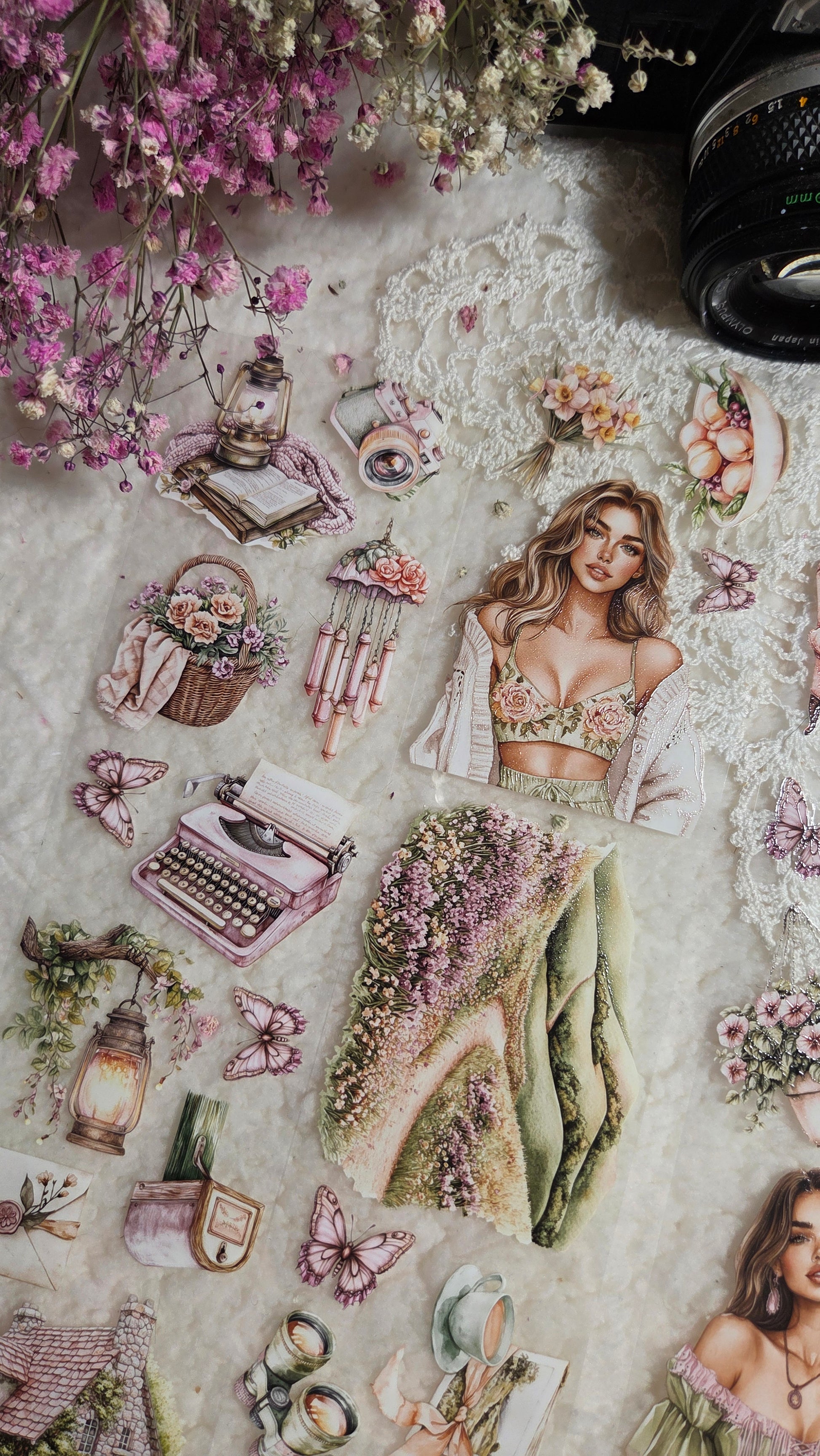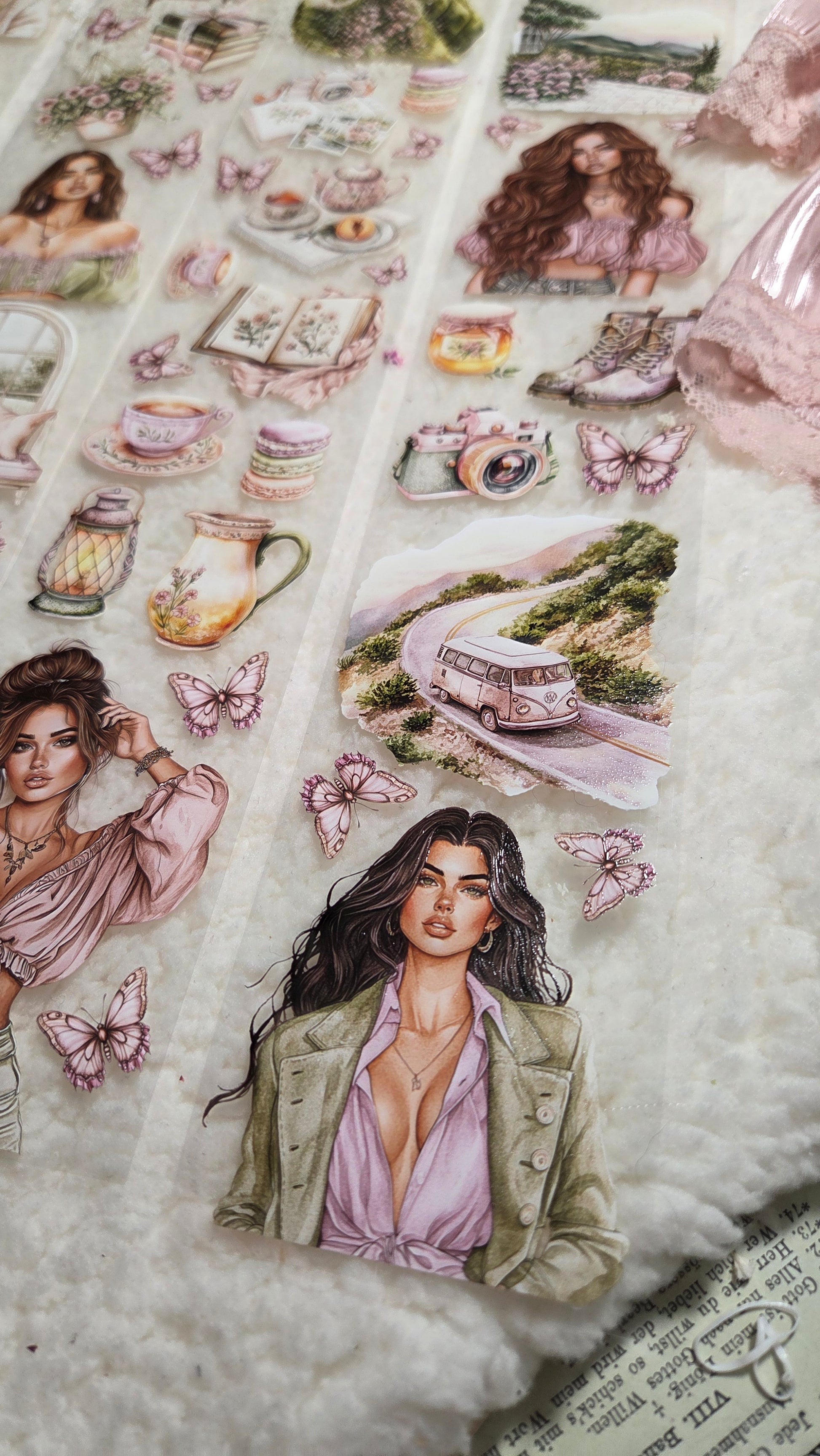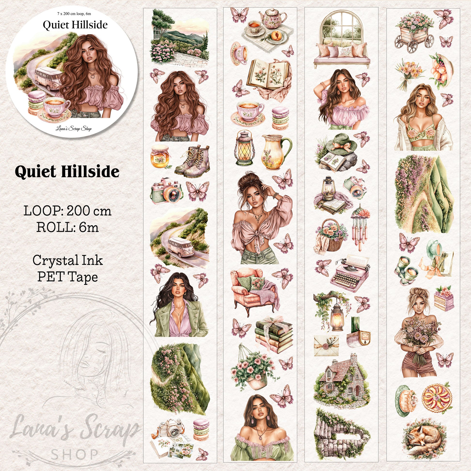 My decorated PET tapes are perfect for journaling but can be used in scrapbooking and other creative projects with extra glue support (glue tape for example). Made from high-quality clear or matte PET material, these tapes feature stunning illustrations created using AI technology (aven bought clipart), with crystal ink designs that add elegance and sparkle to any page. These tapes are a versatile tool to elevate your DIY crafts with ease and style.