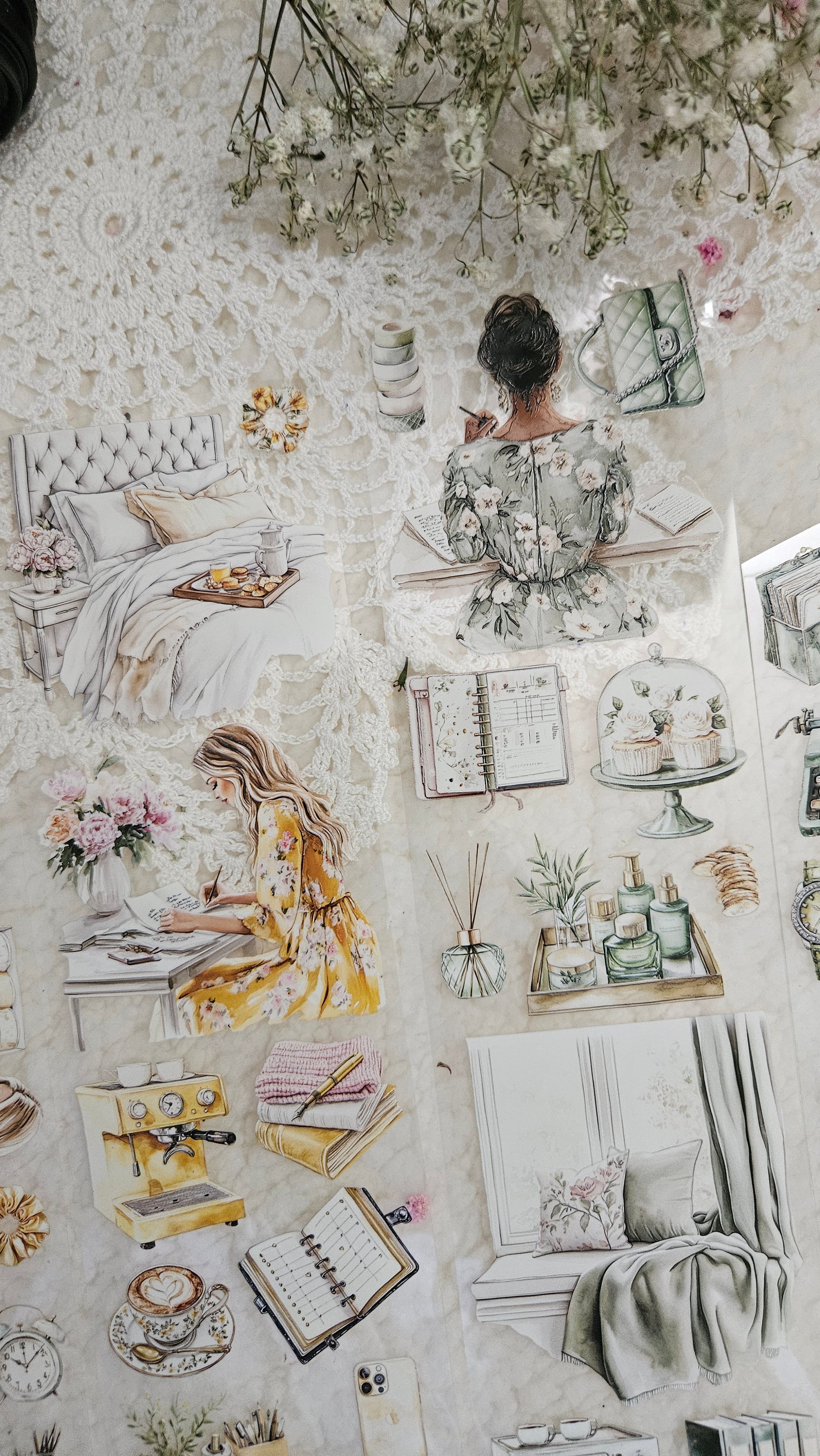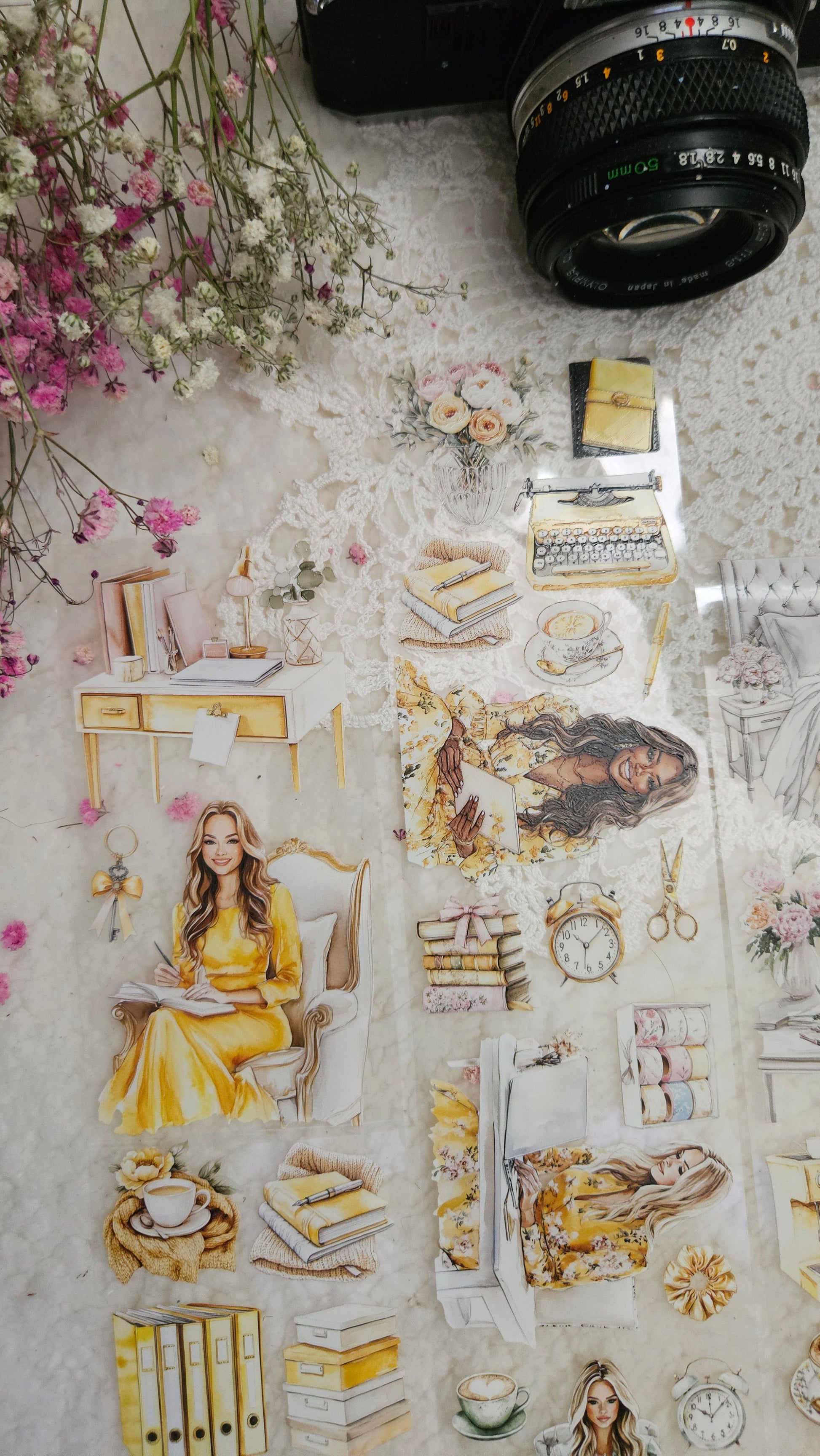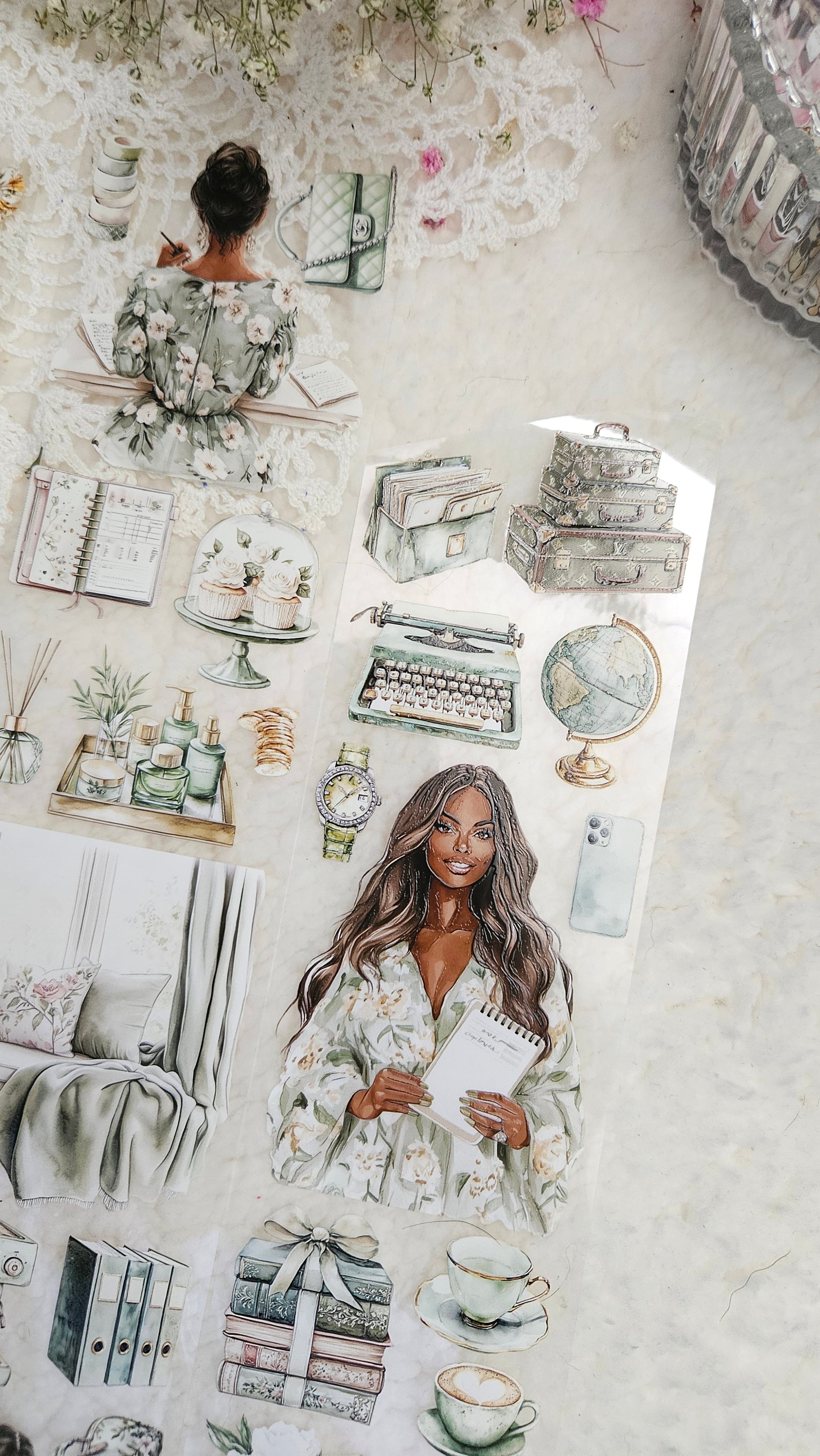 My decorated PET tapes are perfect for journaling but can be used in scrapbooking and other creative projects with extra glue support (glue tape for example). Made from high-quality clear or matte PET material, these tapes feature stunning illustrations created using AI technology (aven bought clipart), with crystal ink designs that add elegance and sparkle to any page. These tapes are a versatile tool to elevate your DIY crafts with ease and style.