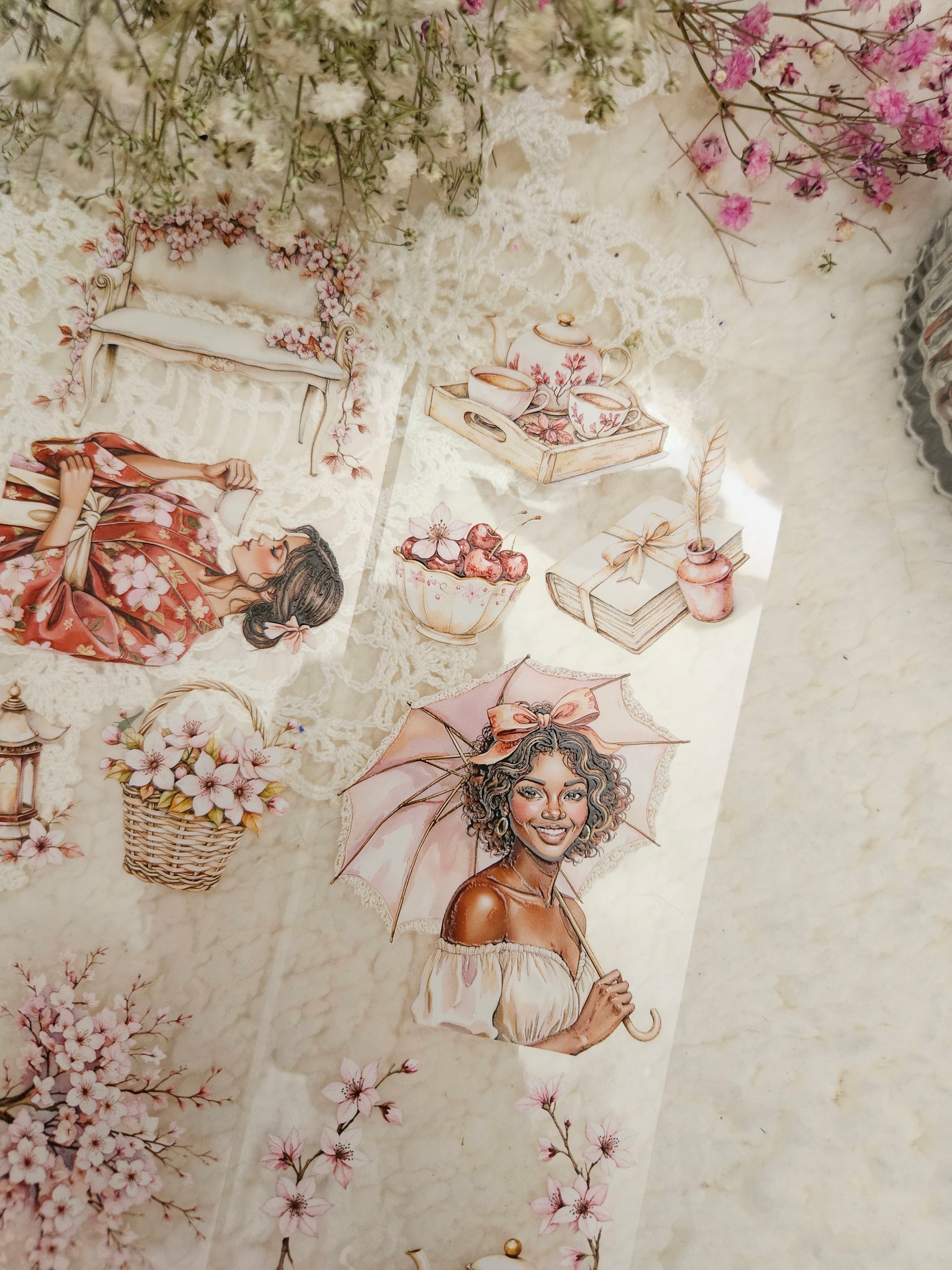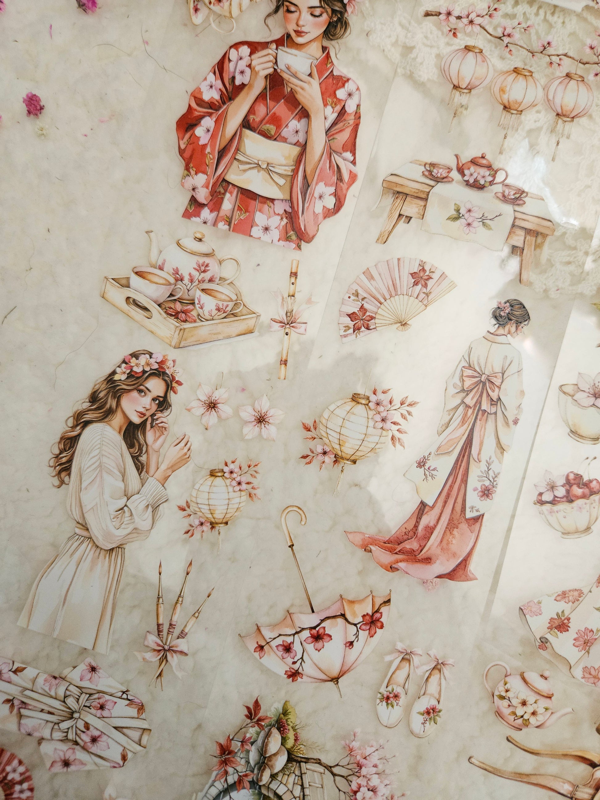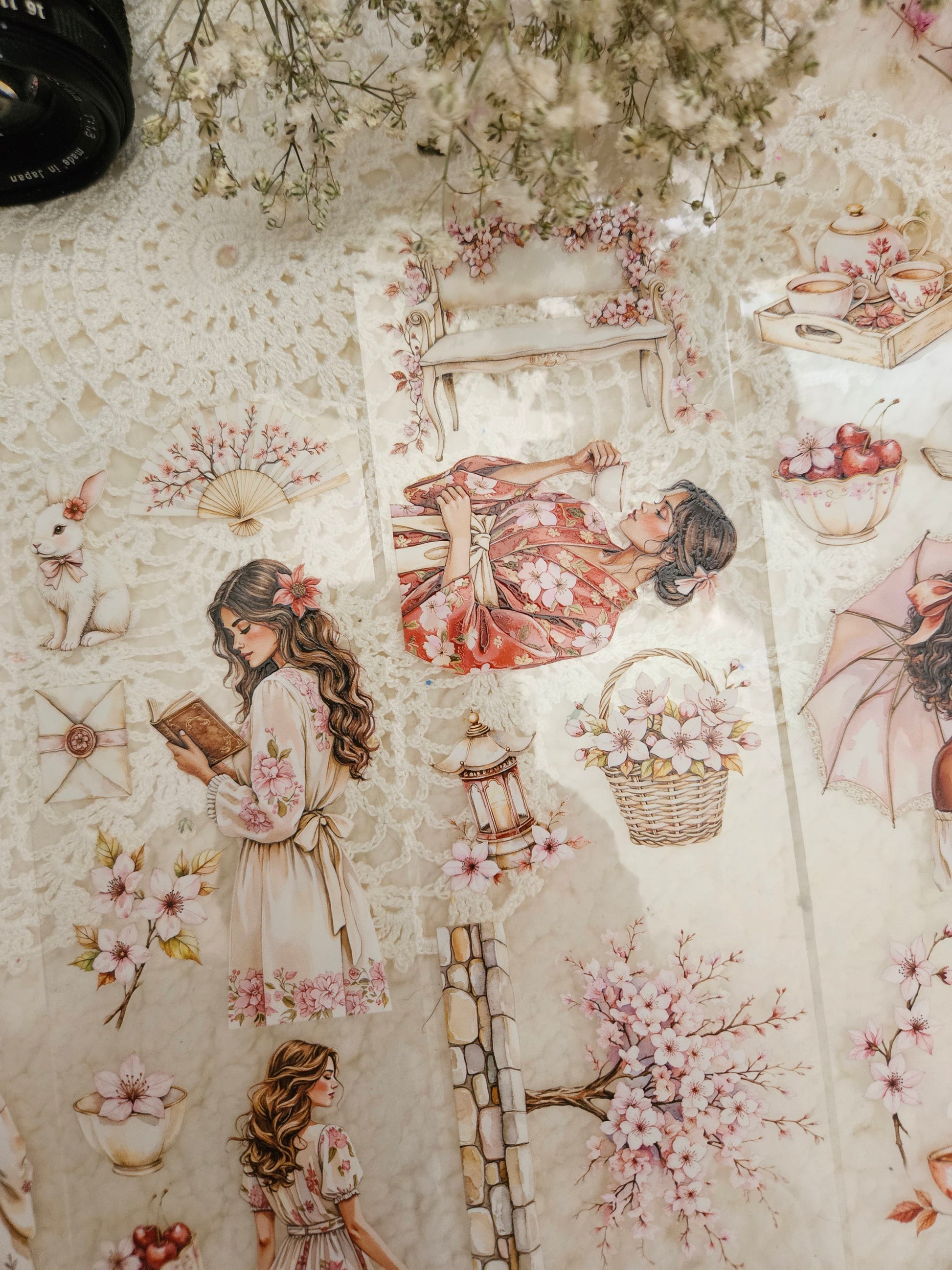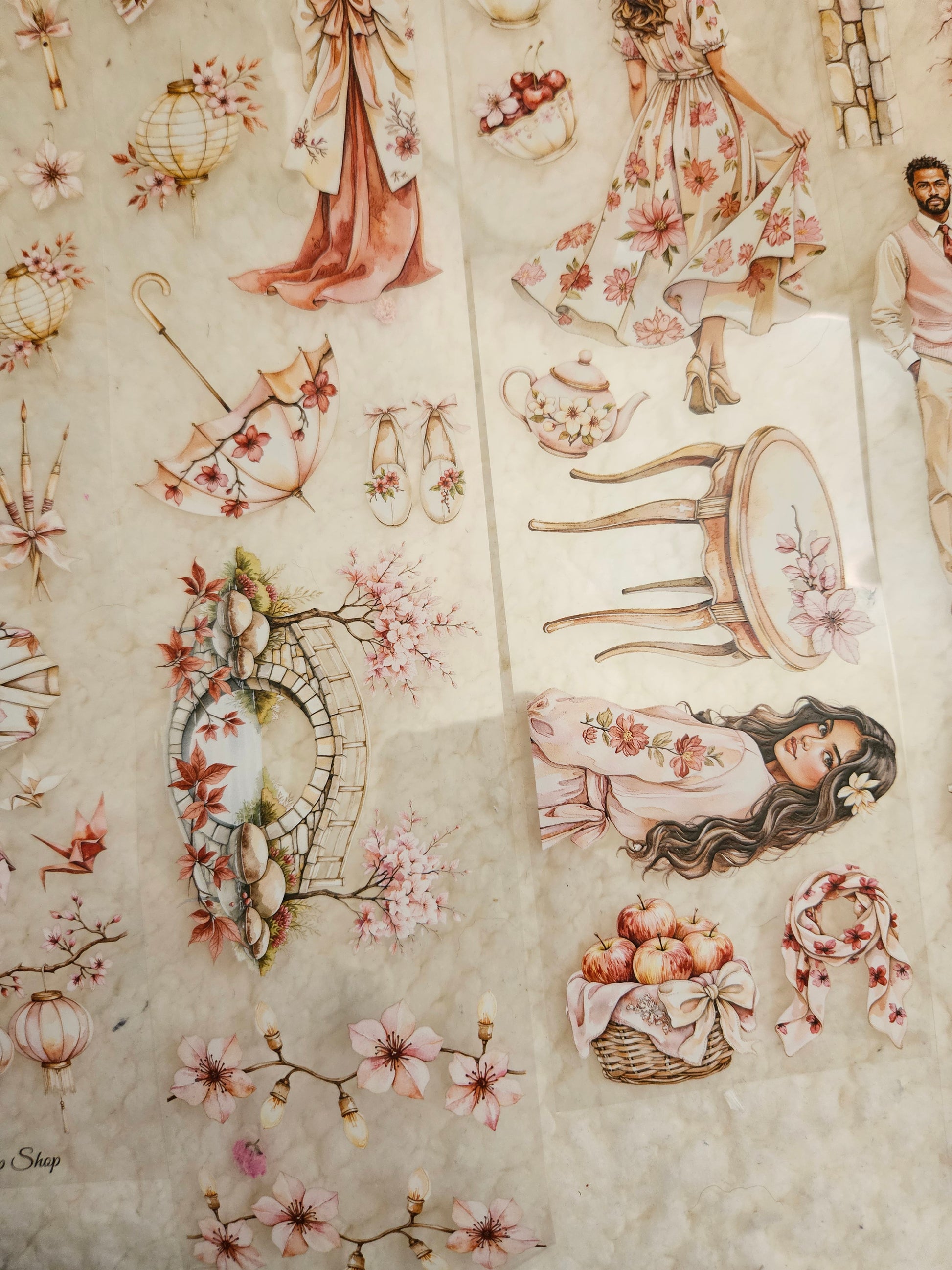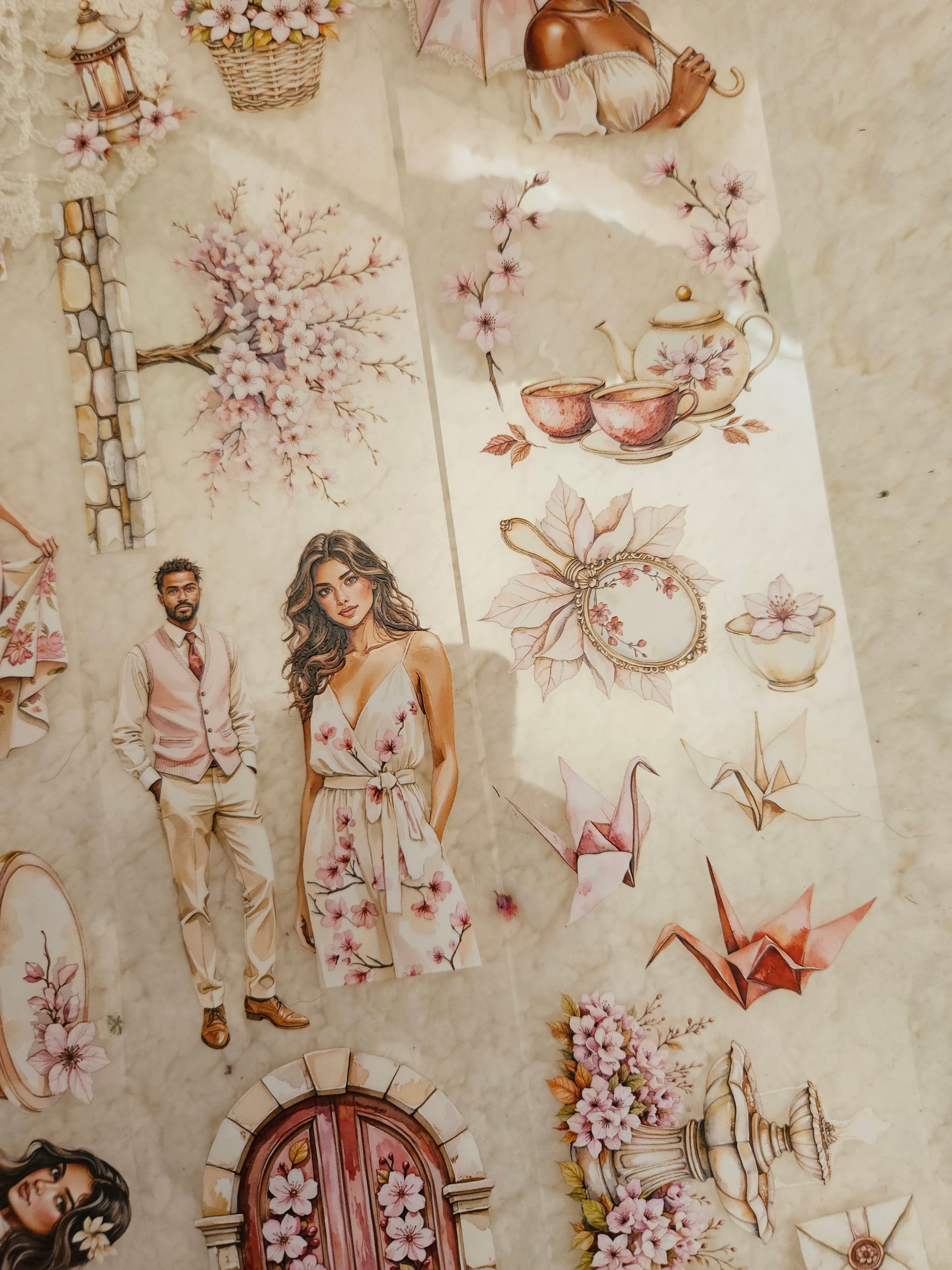 My decorated PET tapes are perfect for journaling but can be used in scrapbooking and other creative projects with extra glue support (glue tape for example). Made from high-quality clear or matte PET material, these tapes feature stunning illustrations created using AI technology (aven bought clipart), with crystal ink designs that add elegance and sparkle to any page. These tapes are a versatile tool to elevate your DIY crafts with ease and style.