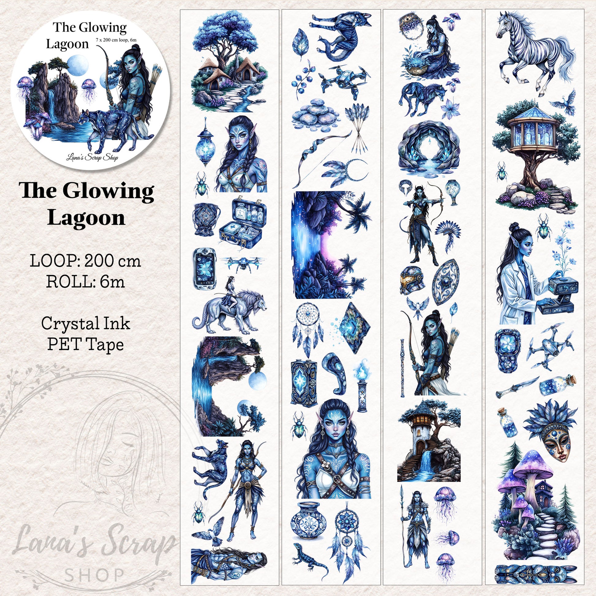 The Glowing Lagoon, Crystal Ink, PET TAPE, 7 cm wide