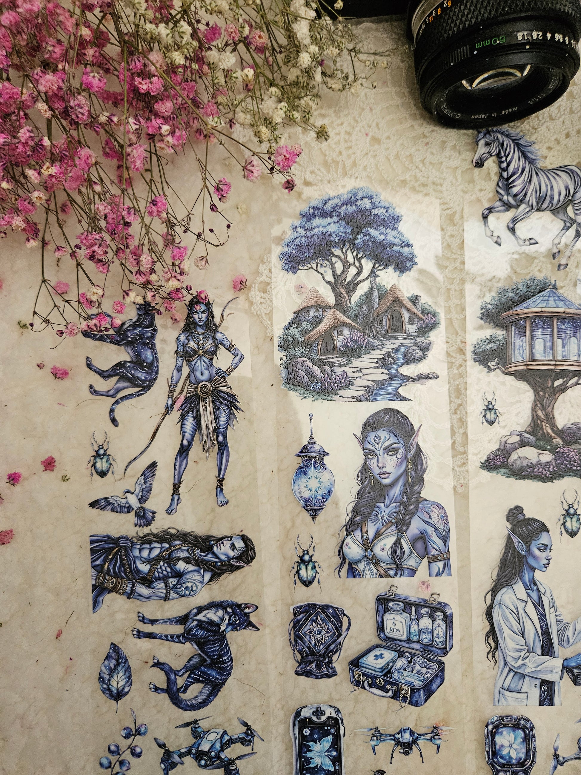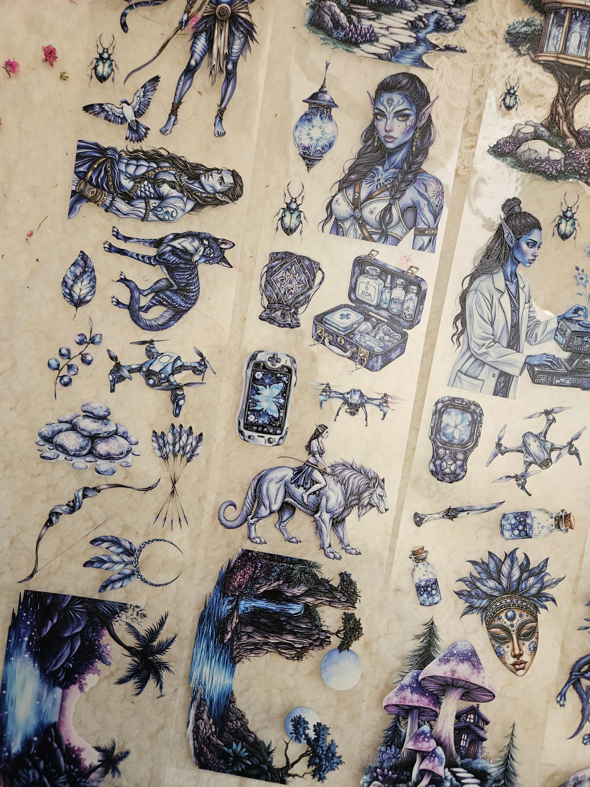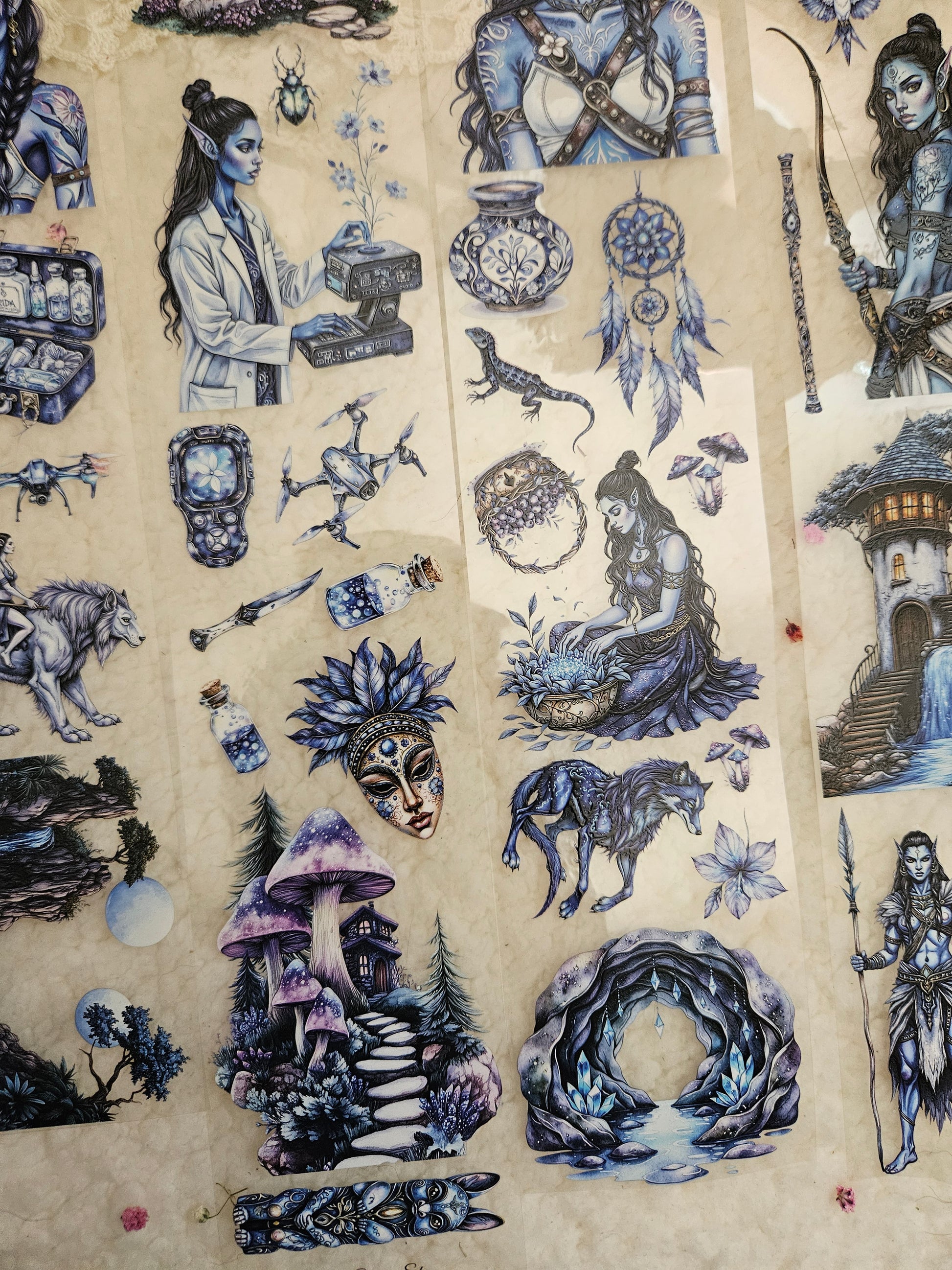 My decorated PET tapes are perfect for journaling but can be used in scrapbooking and other creative projects with extra glue support (glue tape for example). Made from high-quality clear or matte PET material, these tapes feature stunning illustrations created using AI technology (aven bought clipart), with crystal ink designs that add elegance and sparkle to any page. These tapes are a versatile tool to elevate your DIY crafts with ease and style.