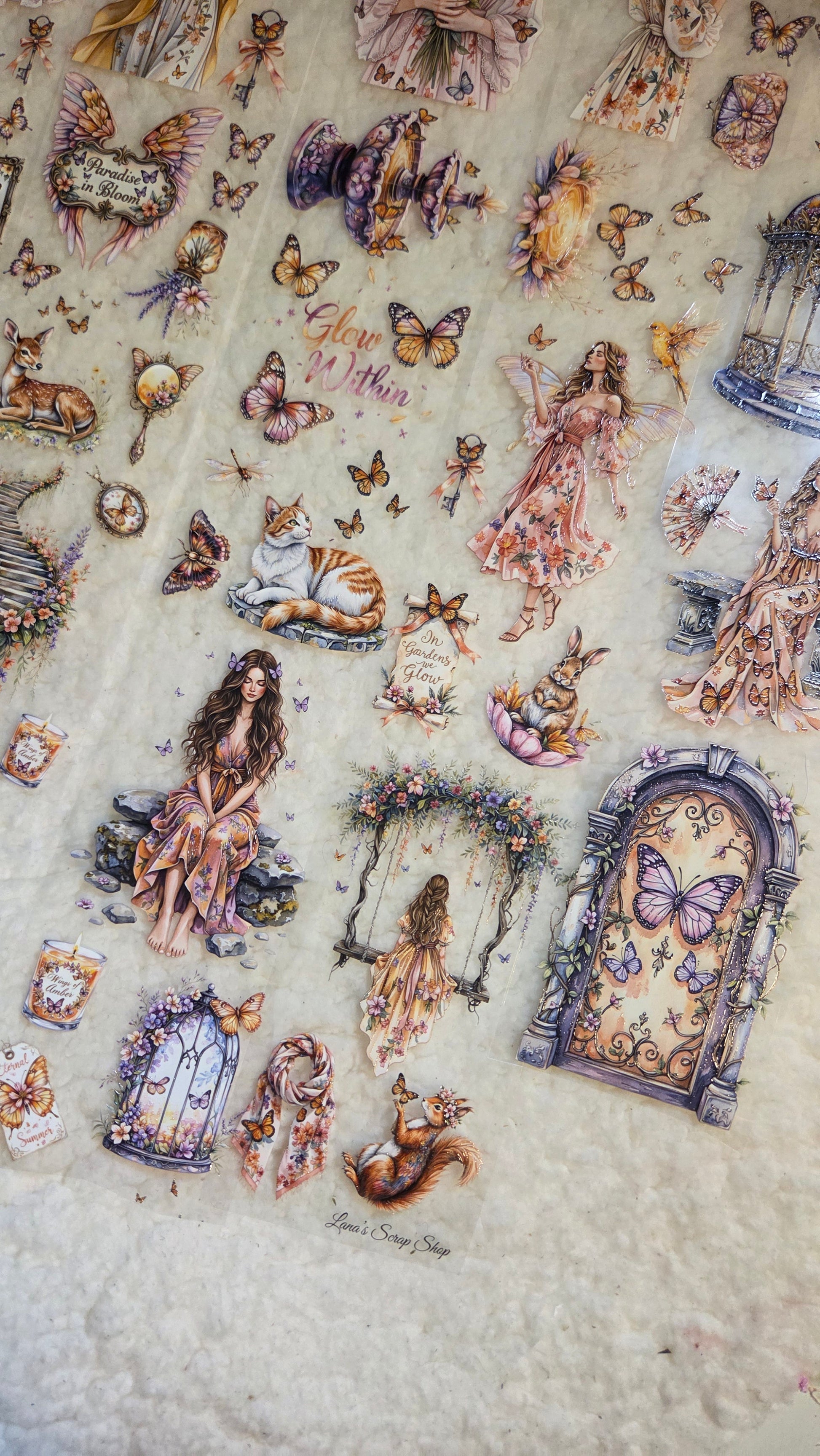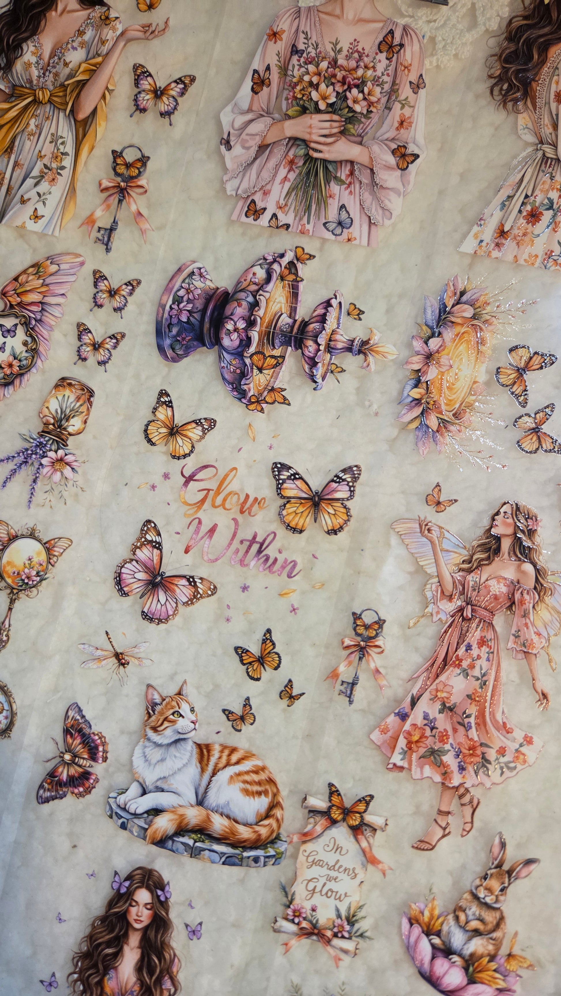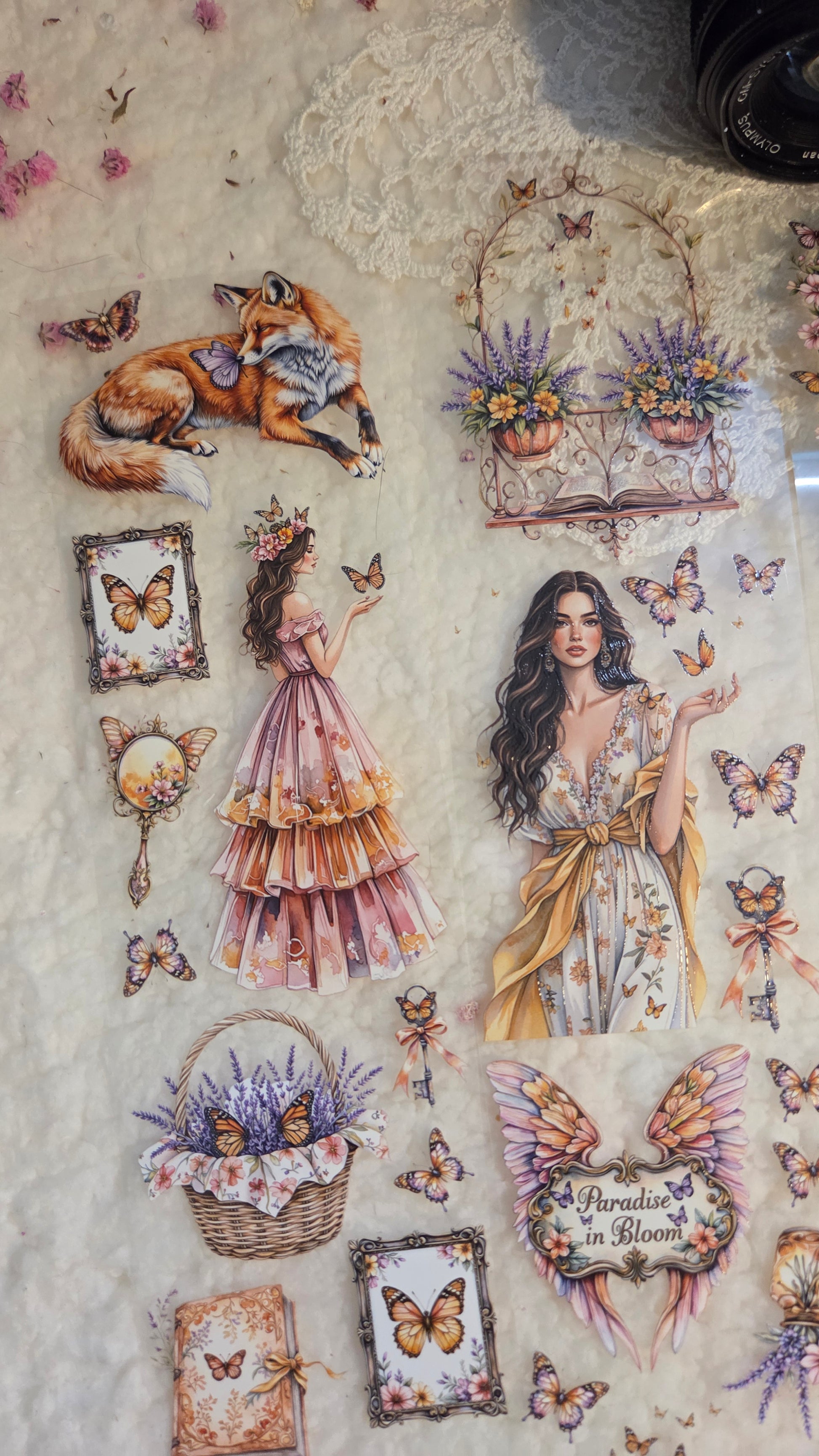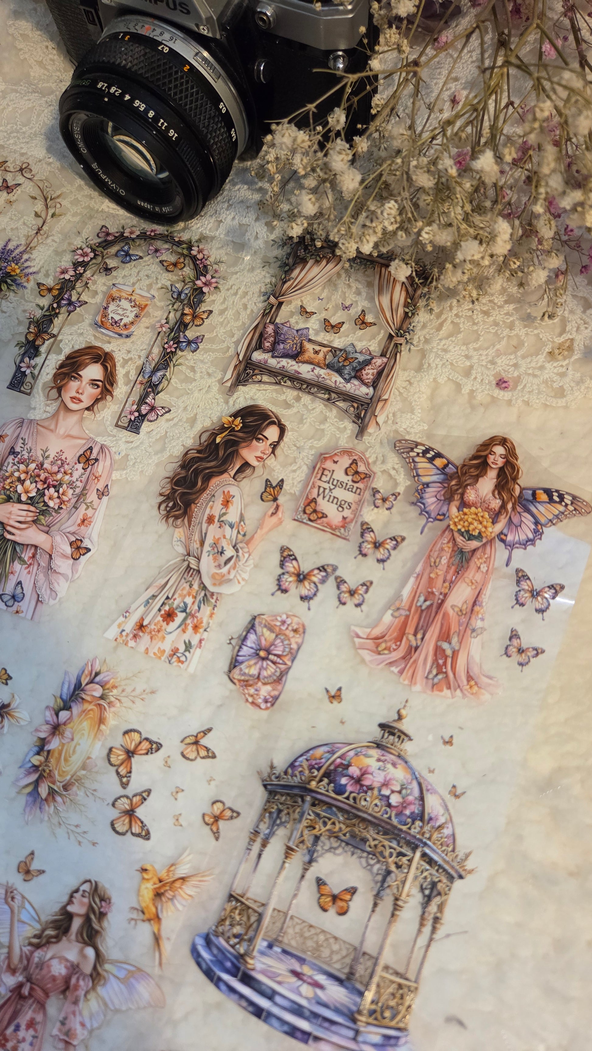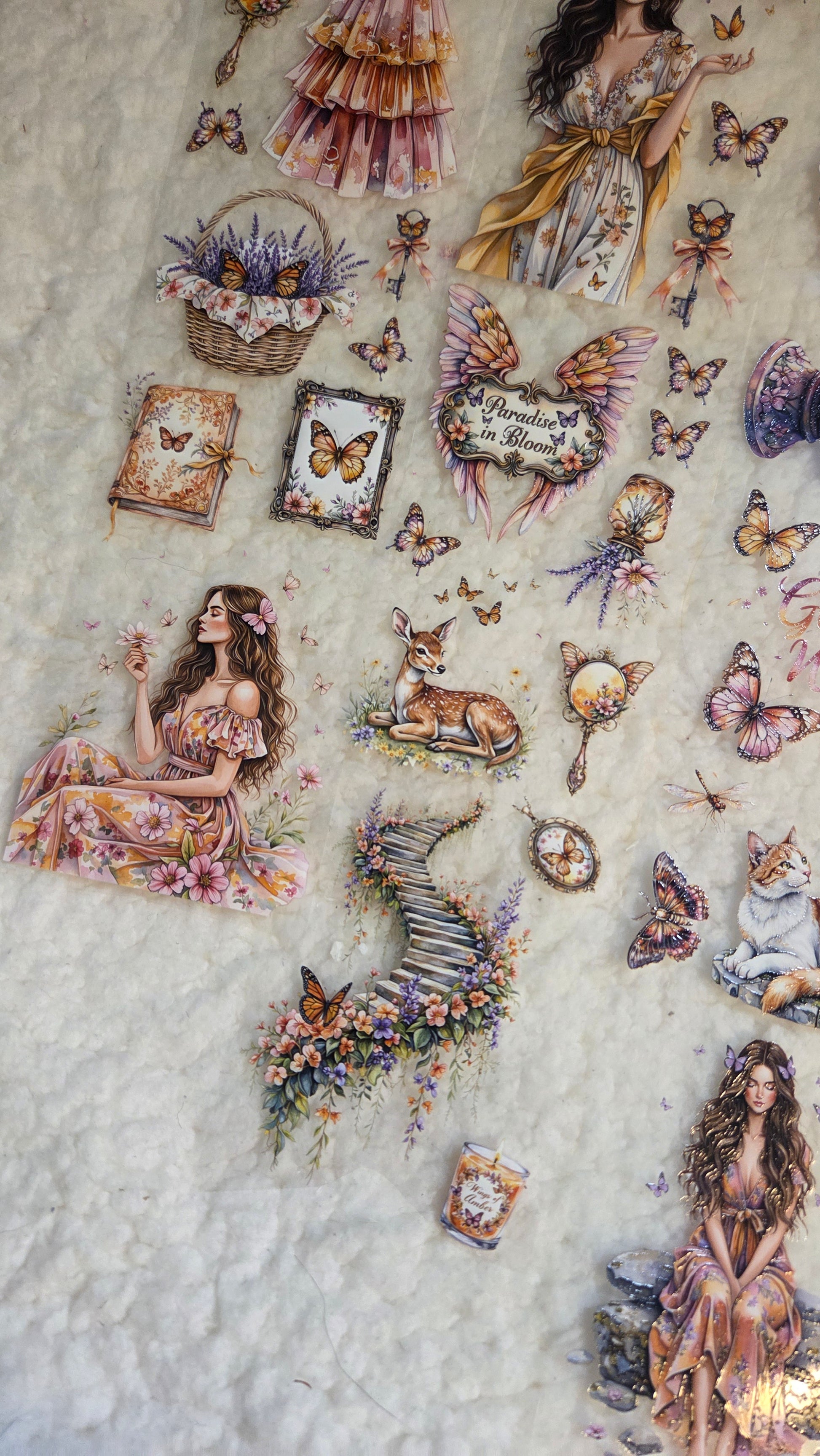 My decorated PET tapes are perfect for journaling but can be used in scrapbooking and other creative projects with extra glue support (glue tape for example). Made from high-quality clear or matte PET material, these tapes feature stunning illustrations created using AI technology (aven bought clipart), with crystal ink designs that add elegance and sparkle to any page. These tapes are a versatile tool to elevate your DIY crafts with ease and style.