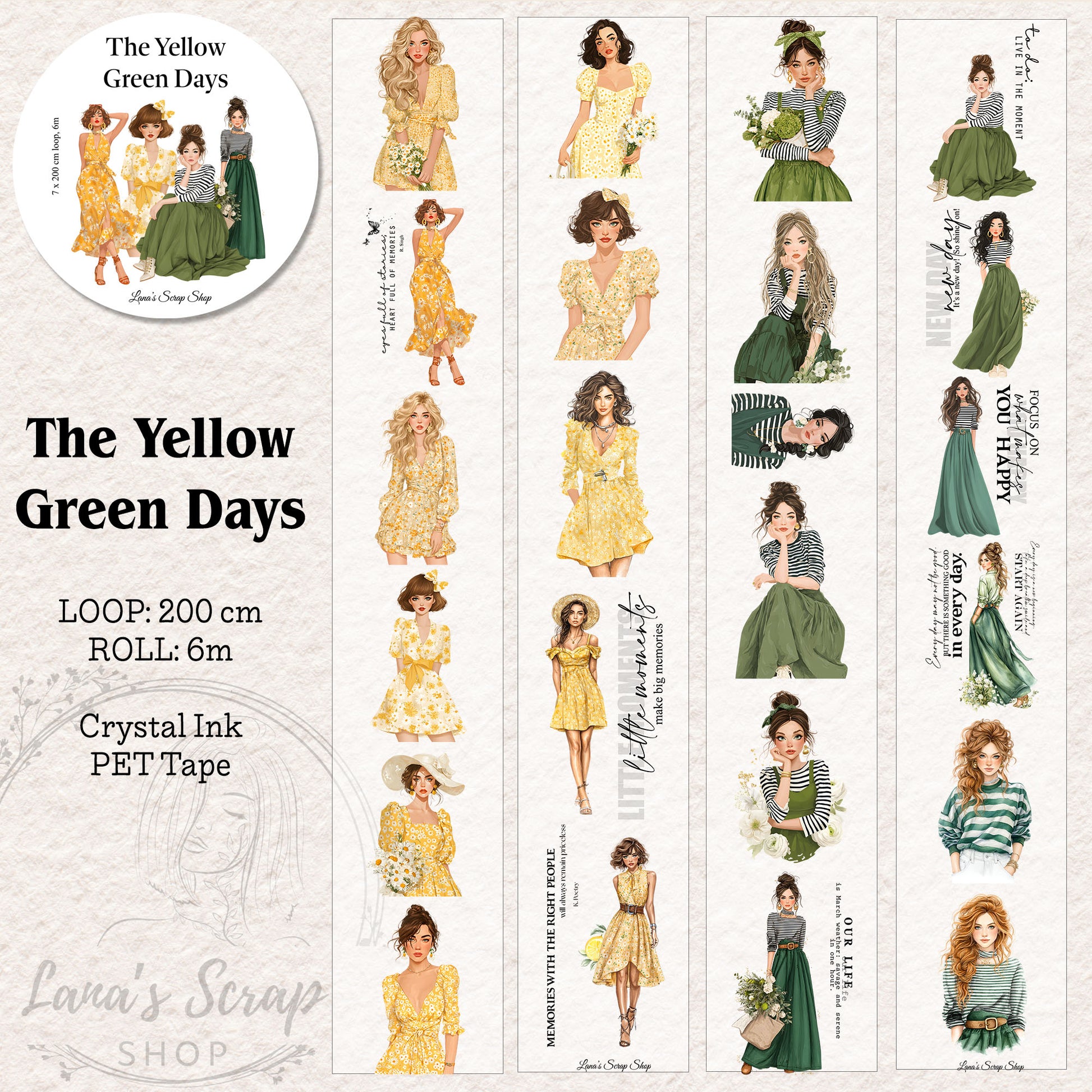 The Yellow Green Days, Crystal Ink, PET TAPE, 6 cm wide