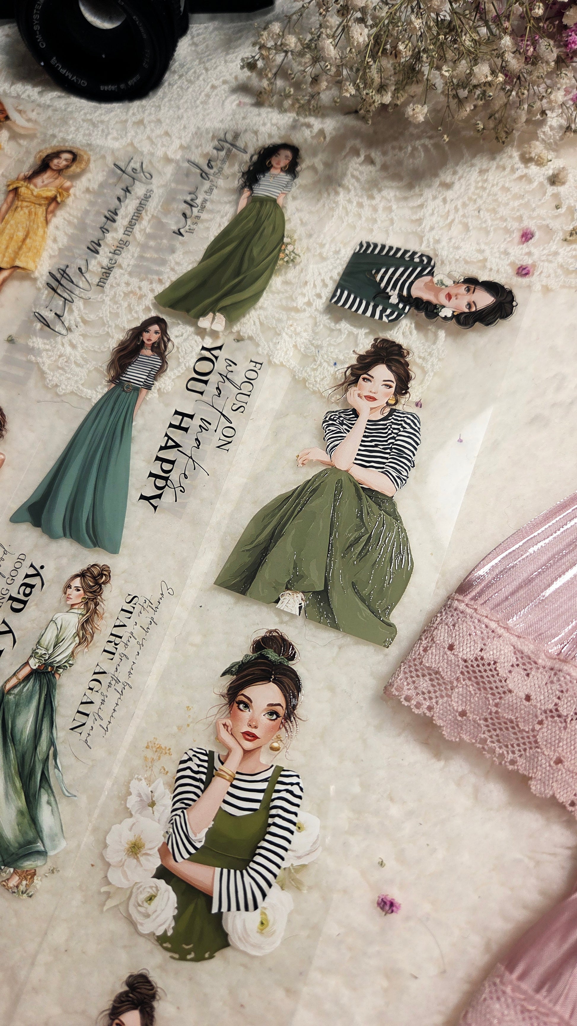 My decorated PET tapes are perfect for journaling but can be used in scrapbooking and other creative projects with extra glue support (glue tape for example). Made from high-quality clear or matte PET material, these tapes feature stunning illustrations created using AI technology (aven bought clipart), with crystal ink designs that add elegance and sparkle to any page. These tapes are a versatile tool to elevate your DIY crafts with ease and style.