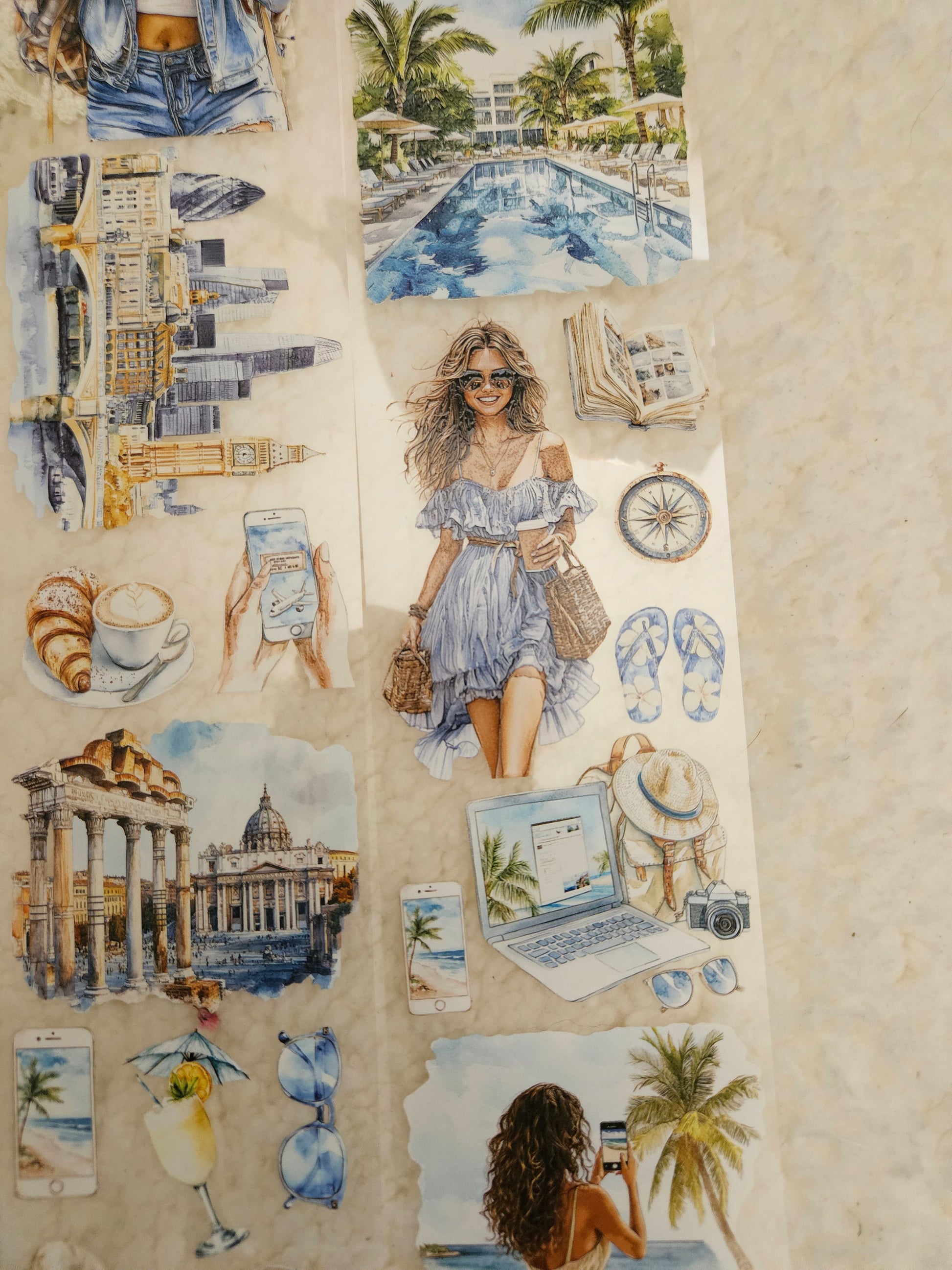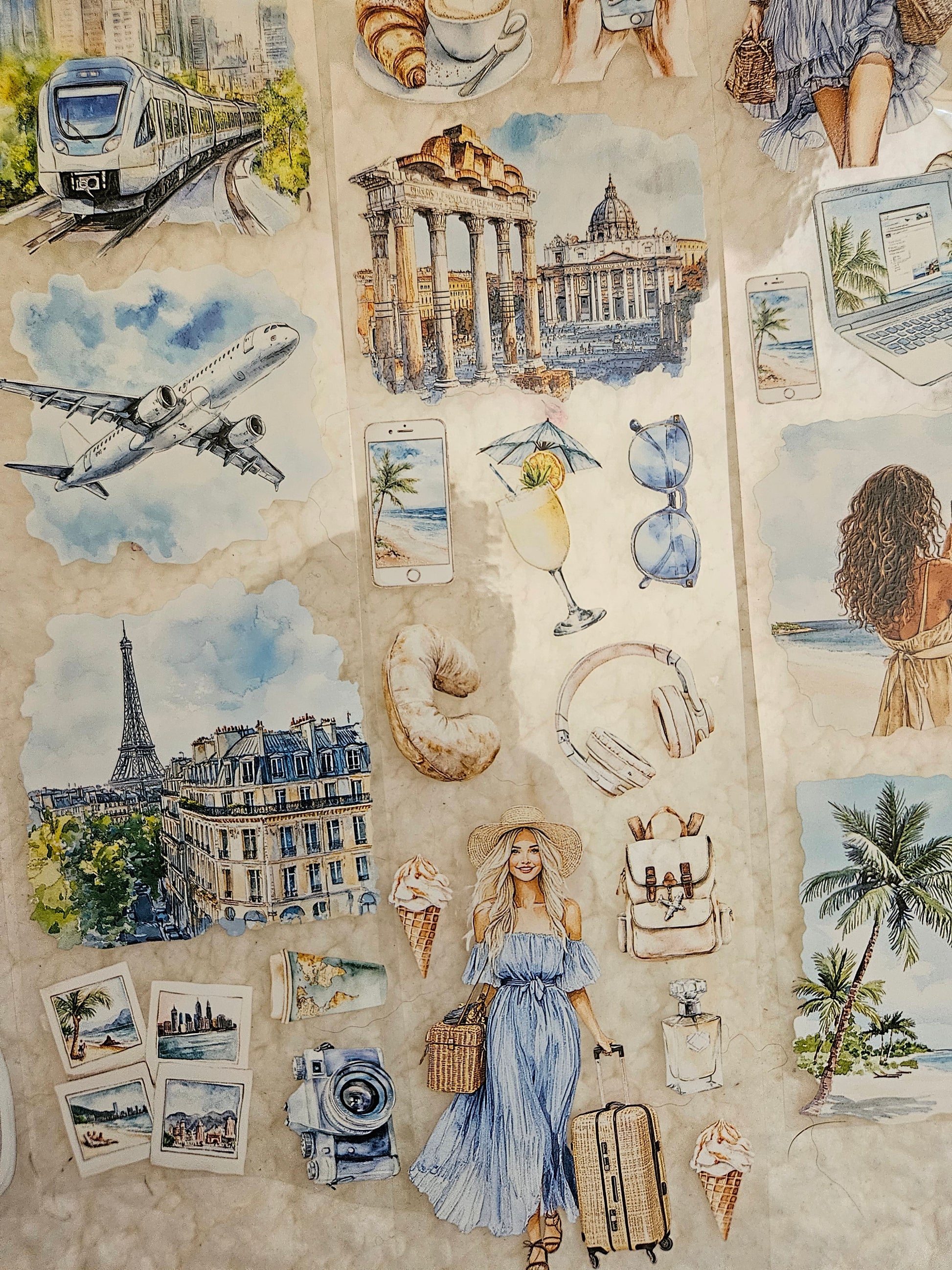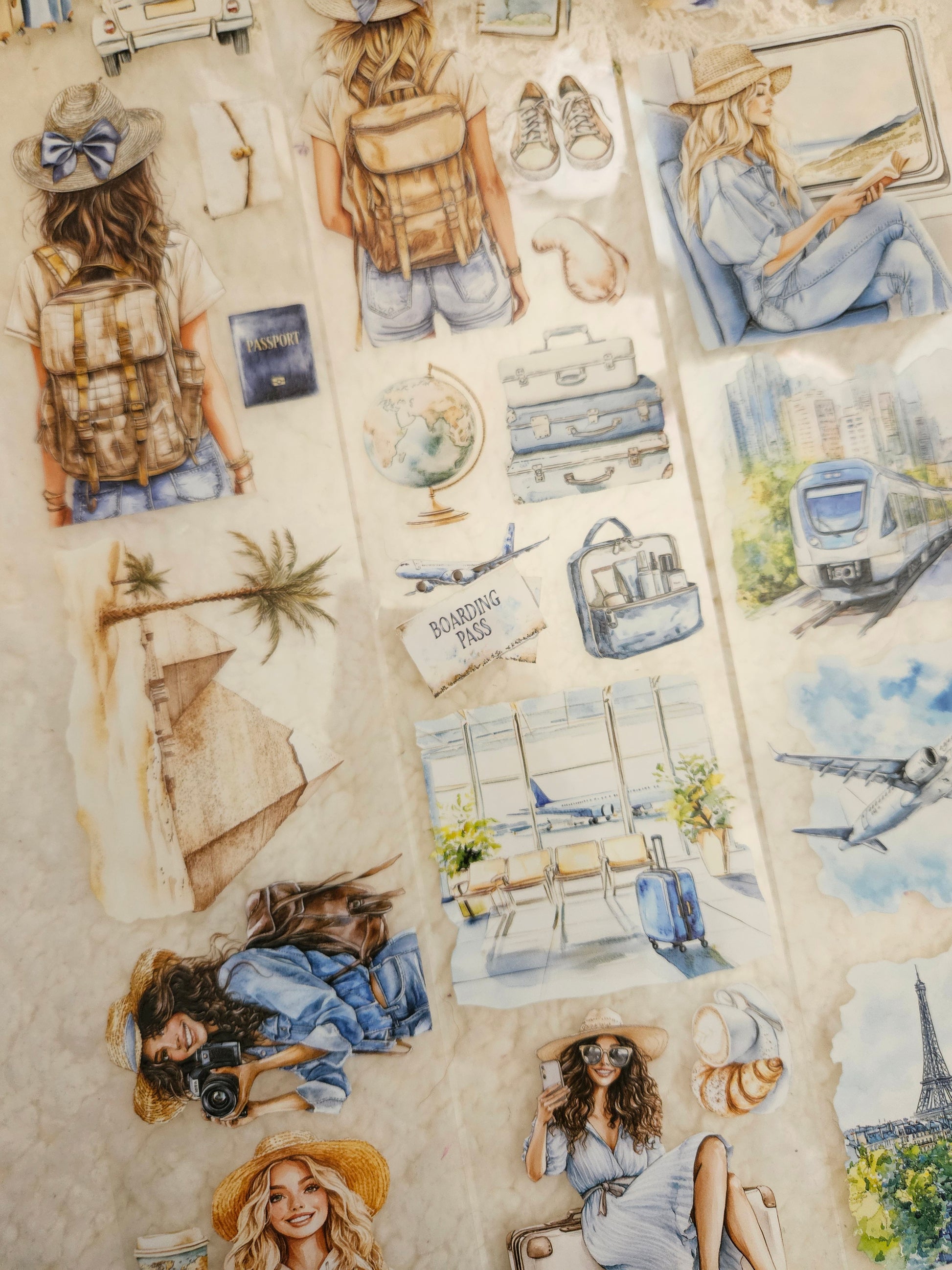 My decorated PET tapes are perfect for journaling but can be used in scrapbooking and other creative projects with extra glue support (glue tape for example). Made from high-quality clear or matte PET material, these tapes feature stunning illustrations created using AI technology (aven bought clipart), with crystal ink designs that add elegance and sparkle to any page. These tapes are a versatile tool to elevate your DIY crafts with ease and style.