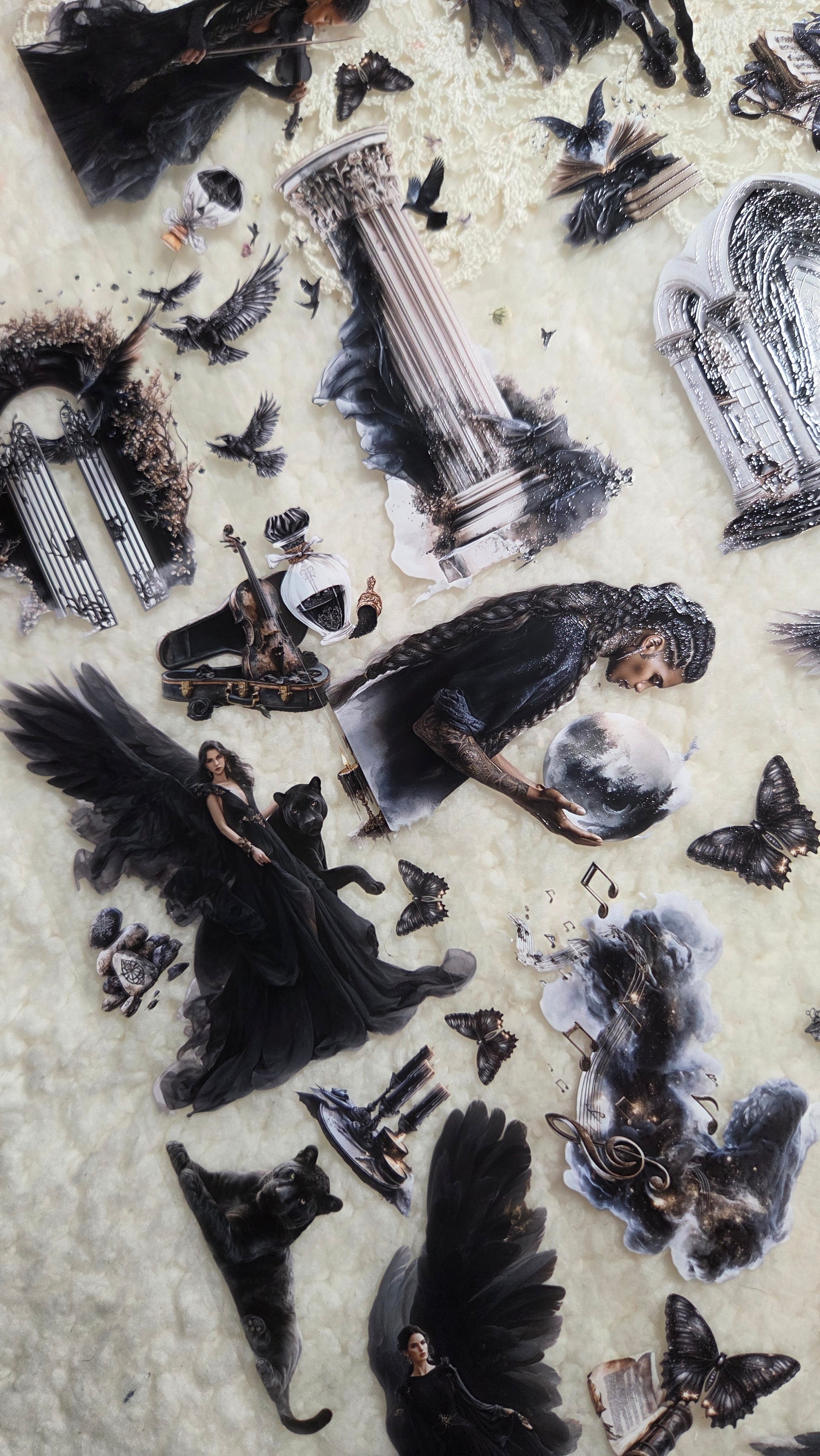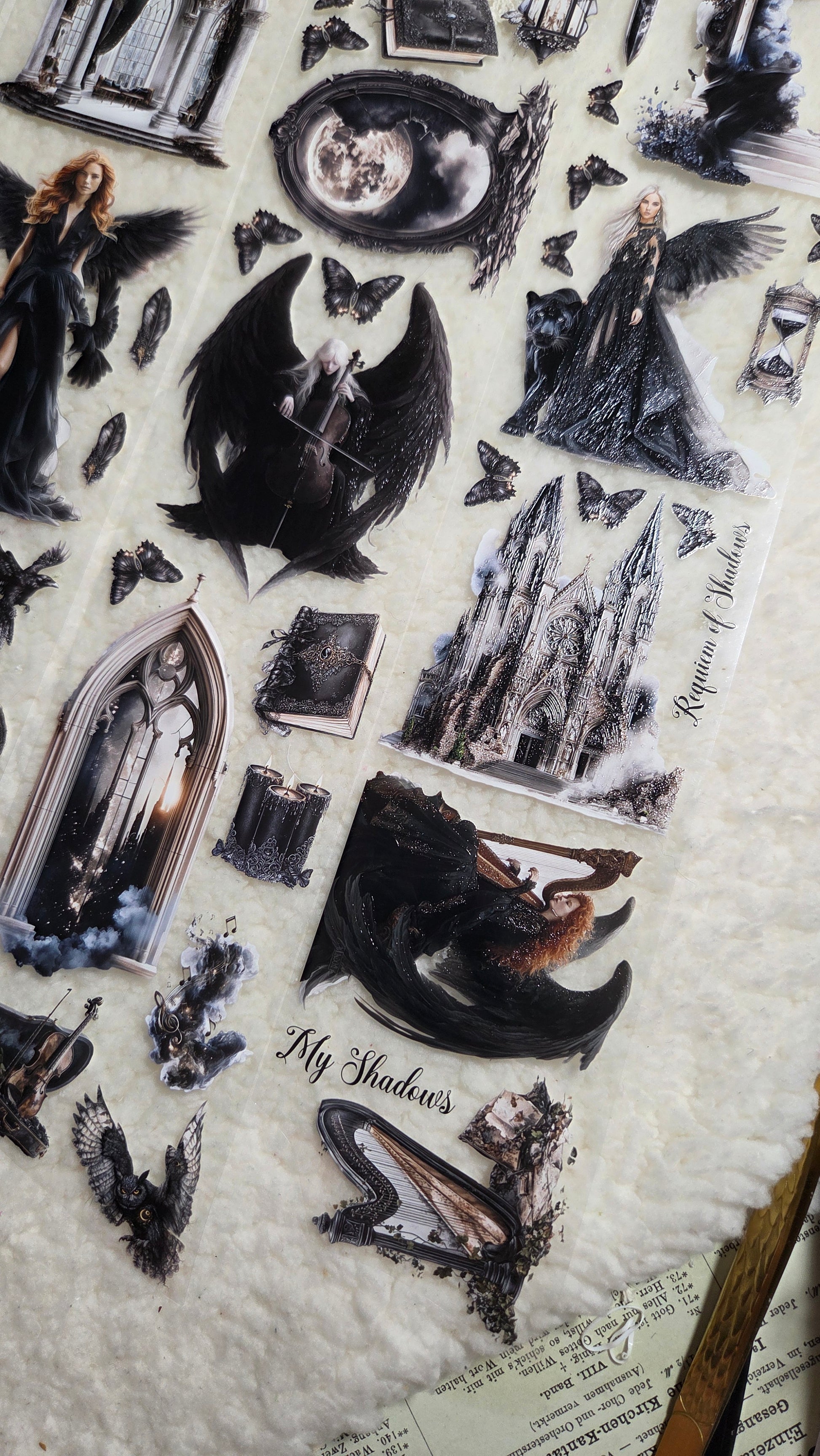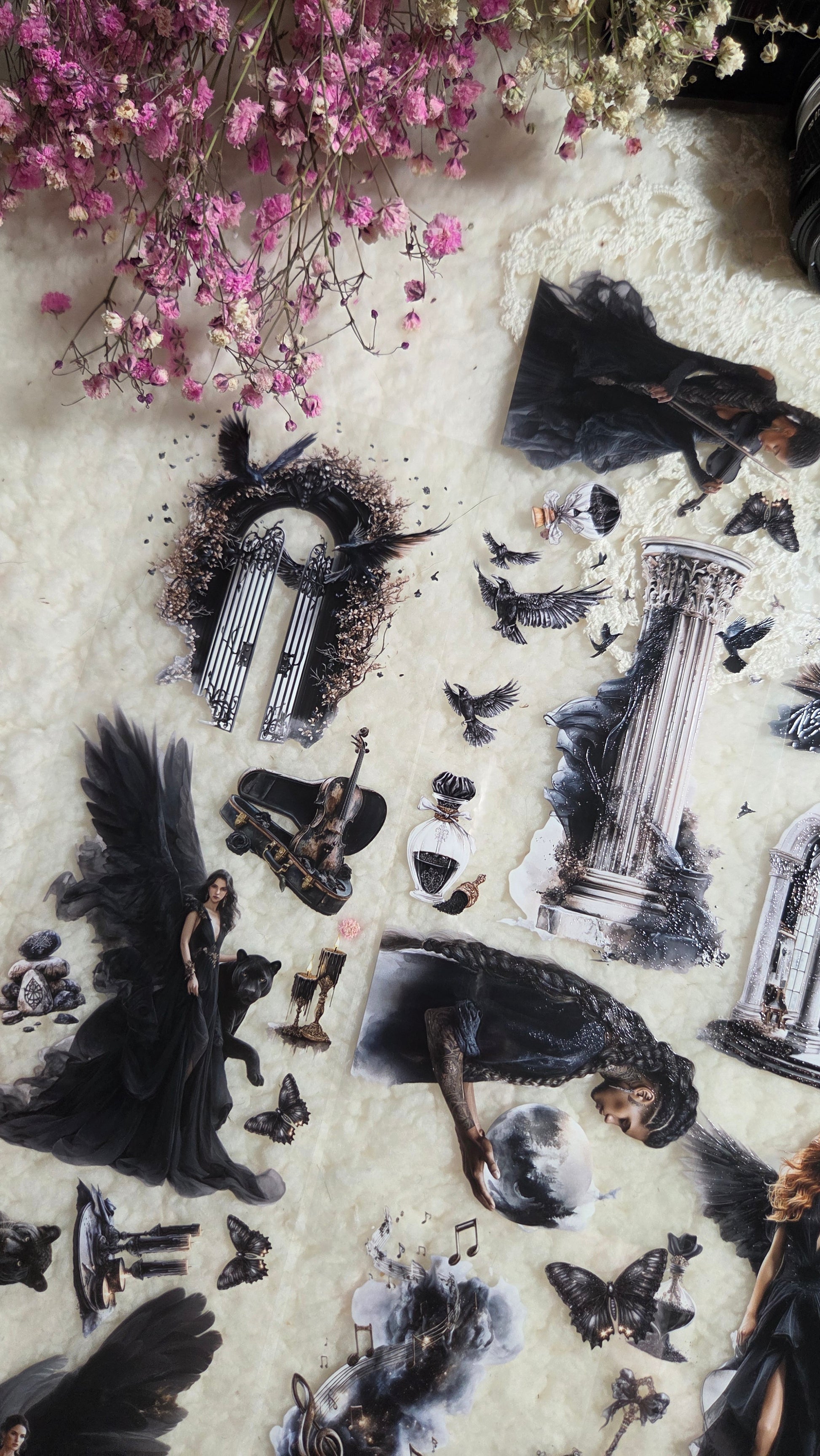 "Requiem of Shadows" is a silent symphony of darkness and beauty — where winged souls, forgotten ruins, and moonlit relics echo like a whisper from the soul’s deepest chamber. A graceful and powerful tape for those who journal with emotion, shadow, and soul.