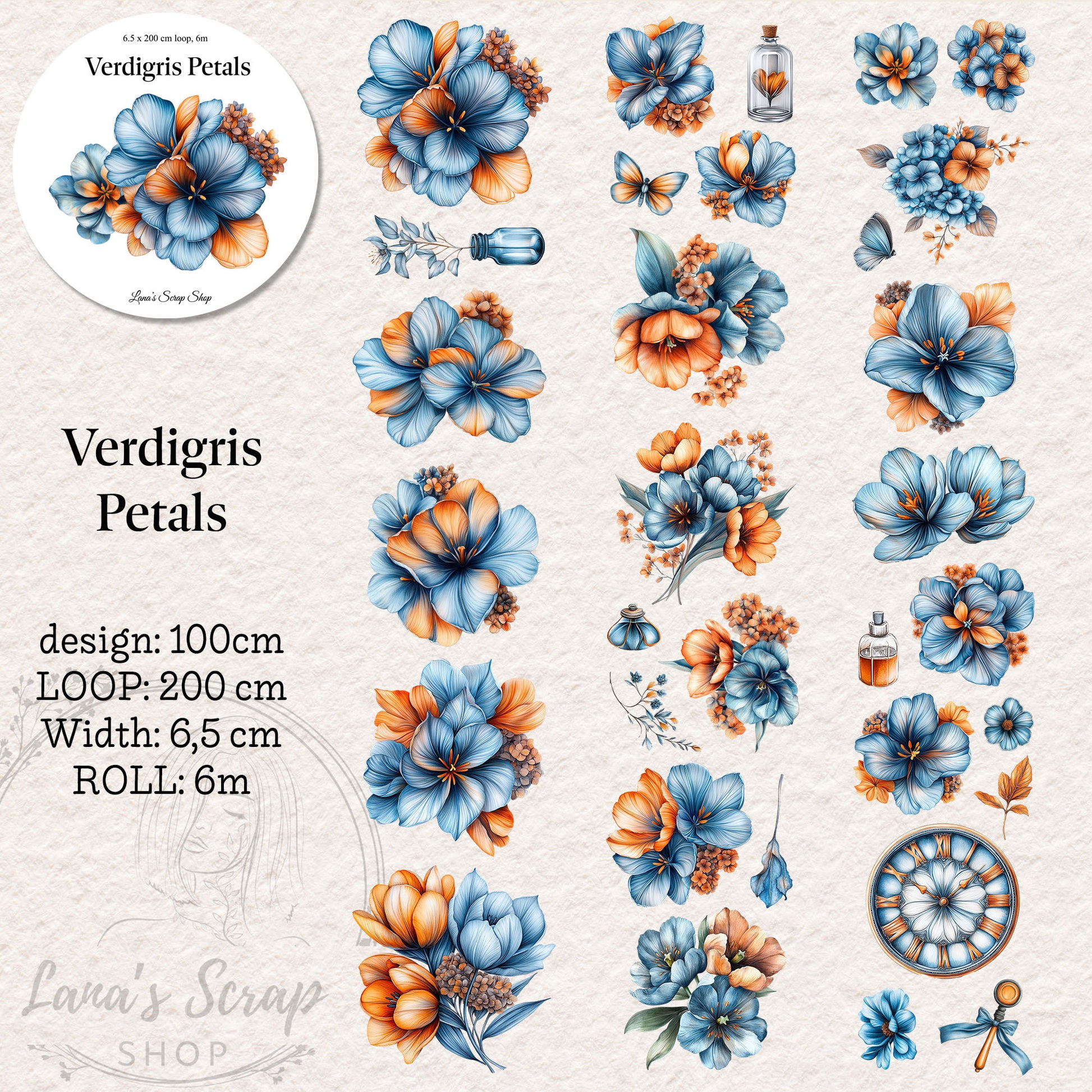 Verdigris Petals, PET Tape, Crystal Ink, 6,5 cm wide.